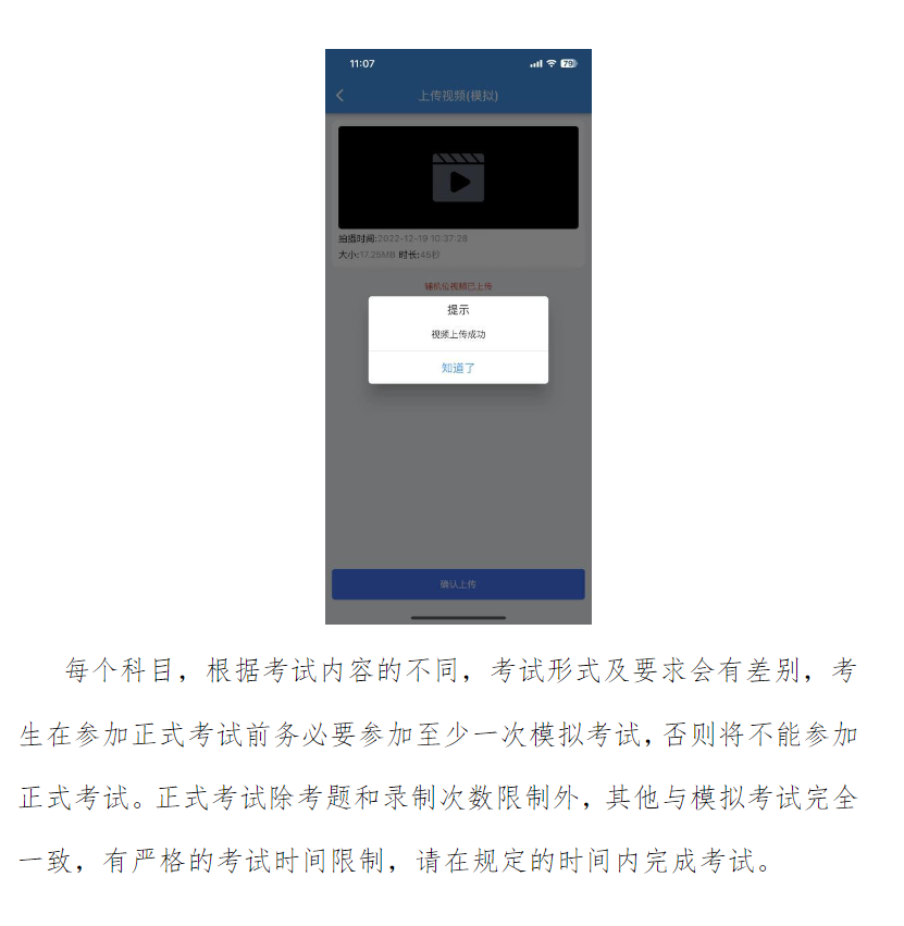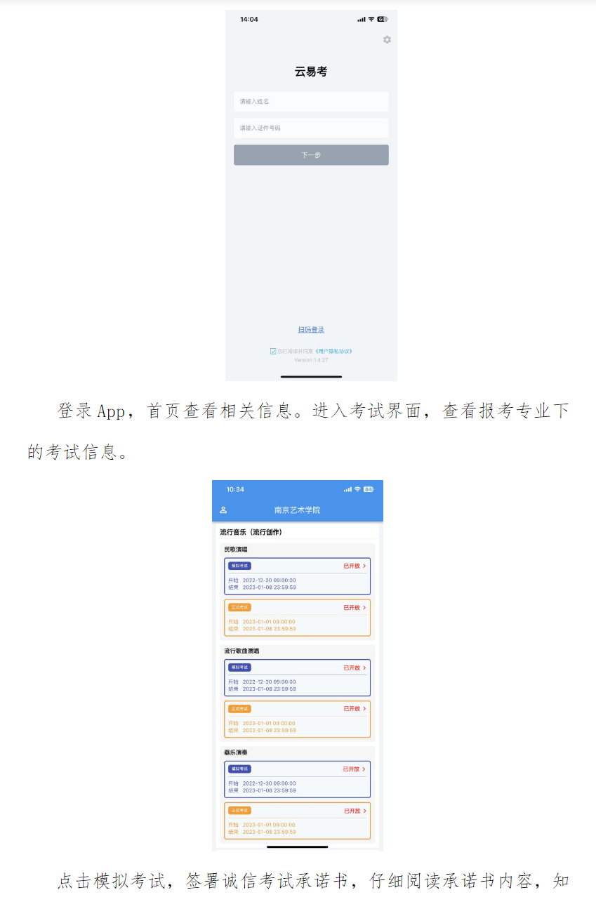 1.2024年1月18日08:00时-1月28日18:00时,已报名且缴费成功的考生通过“云易考”APP进行考试视频上传。