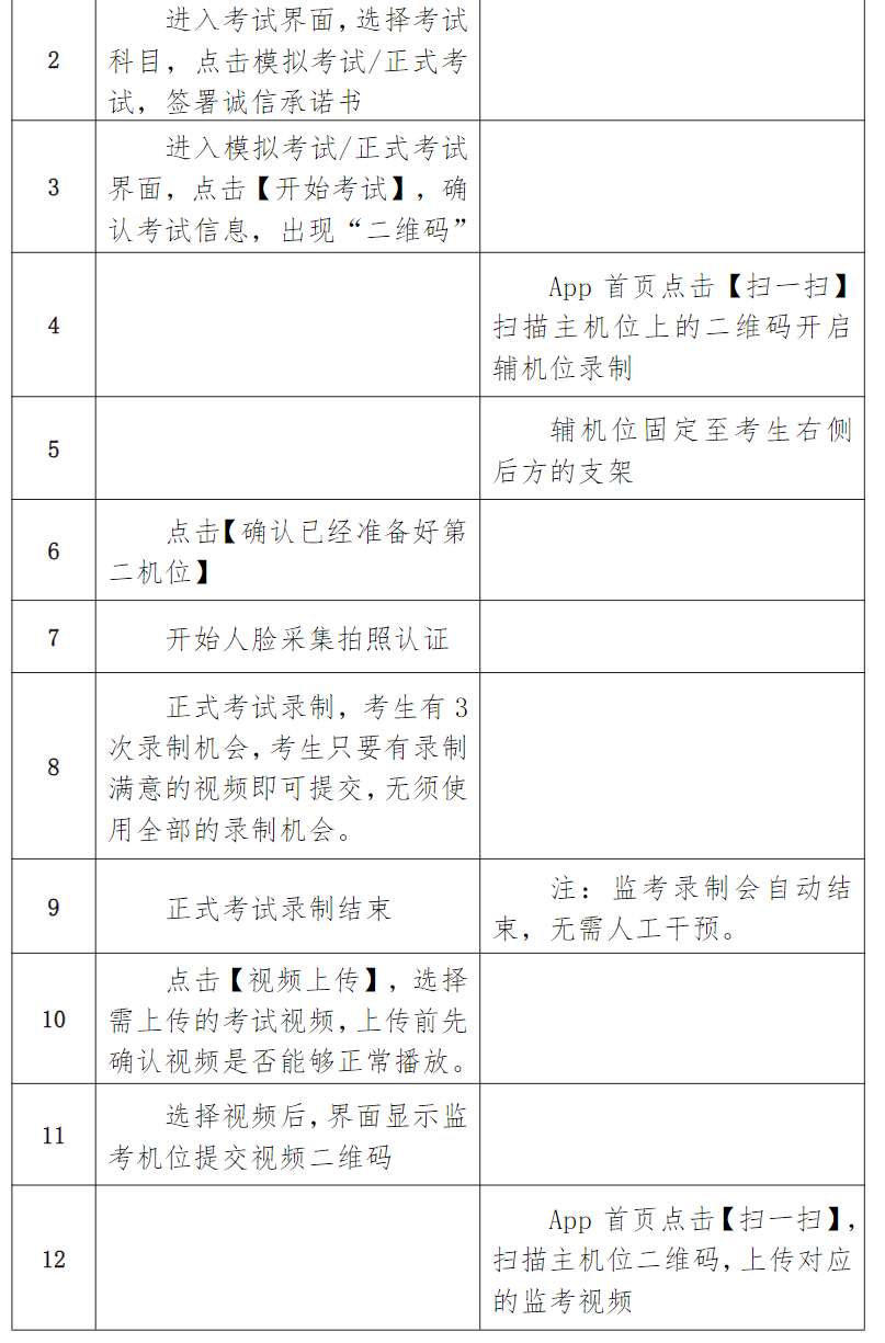 4.须按要求摆放双机位,保证考生始终在主机位拍摄范围内,考生及主机位始终在辅助机位拍摄范围内;不得有他人进入考试空间;不得关闭手机麦克风、摄像头功能或遮挡摄像头导致拍摄录制异常(没有录制声音、无故中断),否则视为作弊