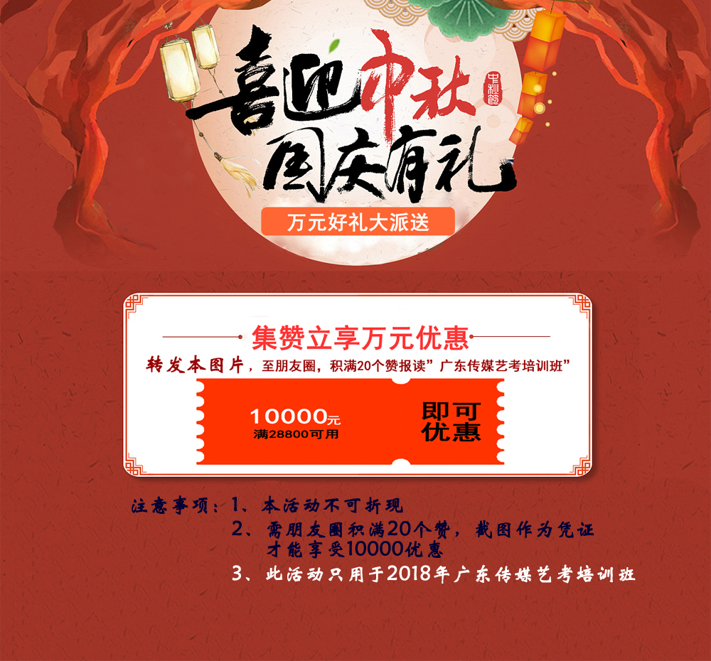 (PS:福利一优惠仅限国庆节期间报读广东传媒艺考培训班噢~)