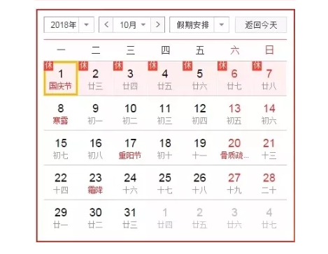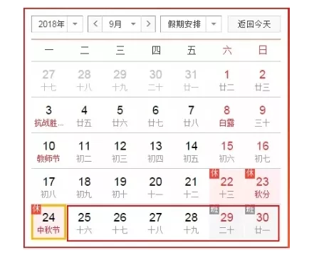 今年的中秋小长假
