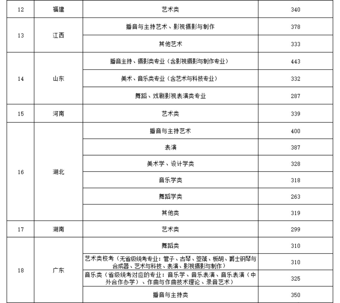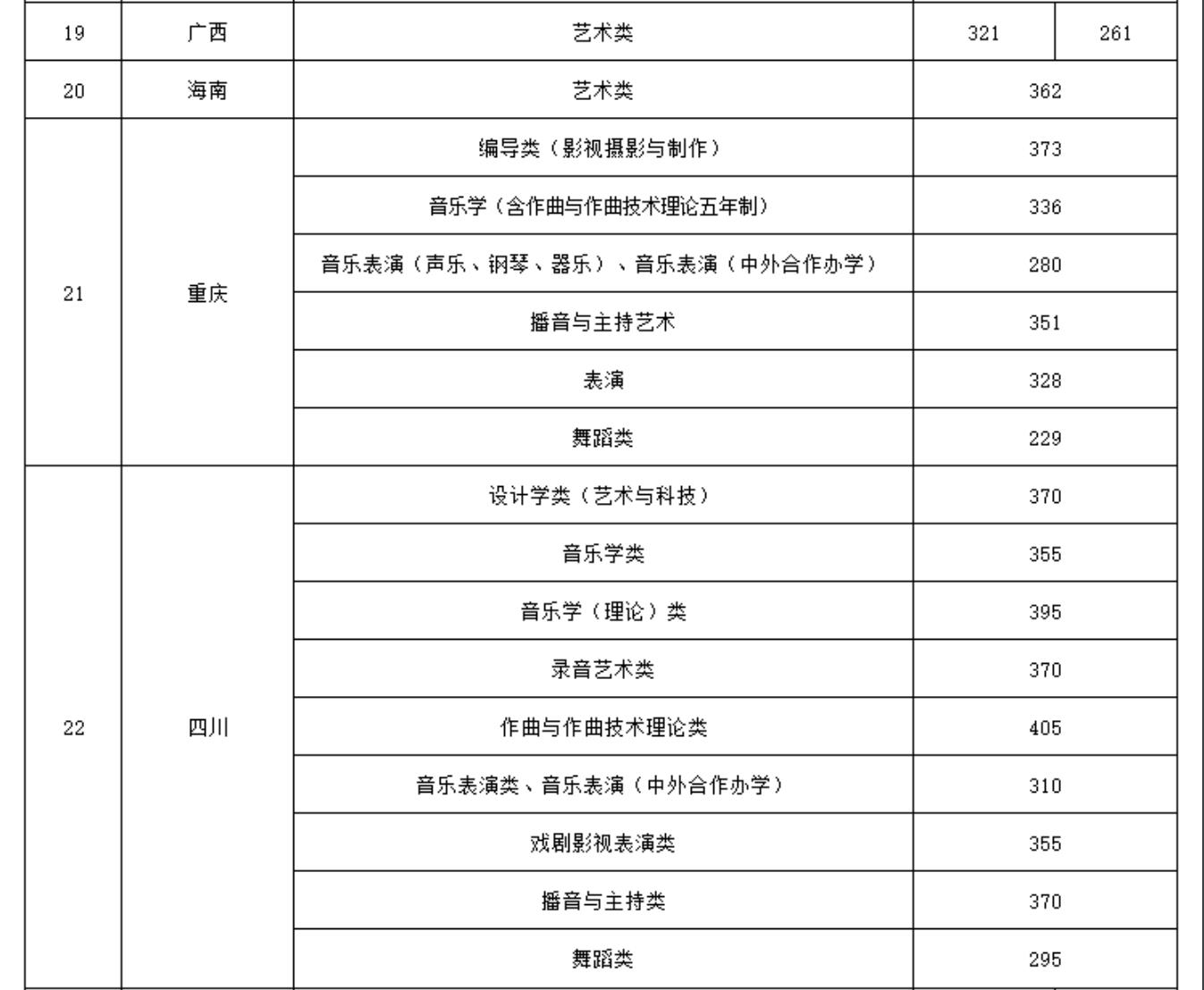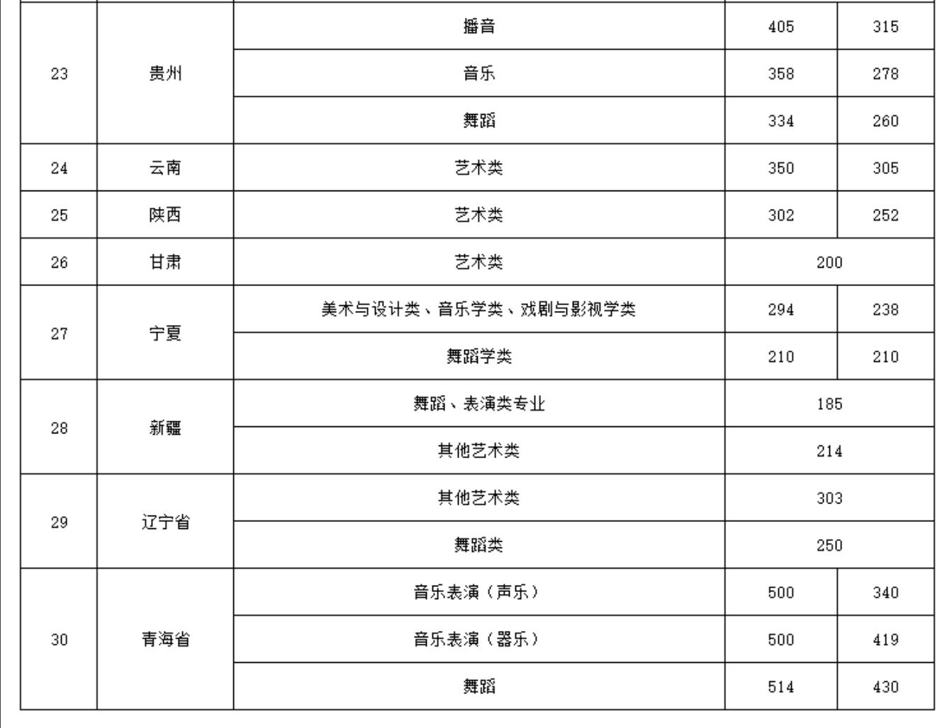 沈阳音乐学院2023年本科艺术类专业录取各省文化课最低控制分数线