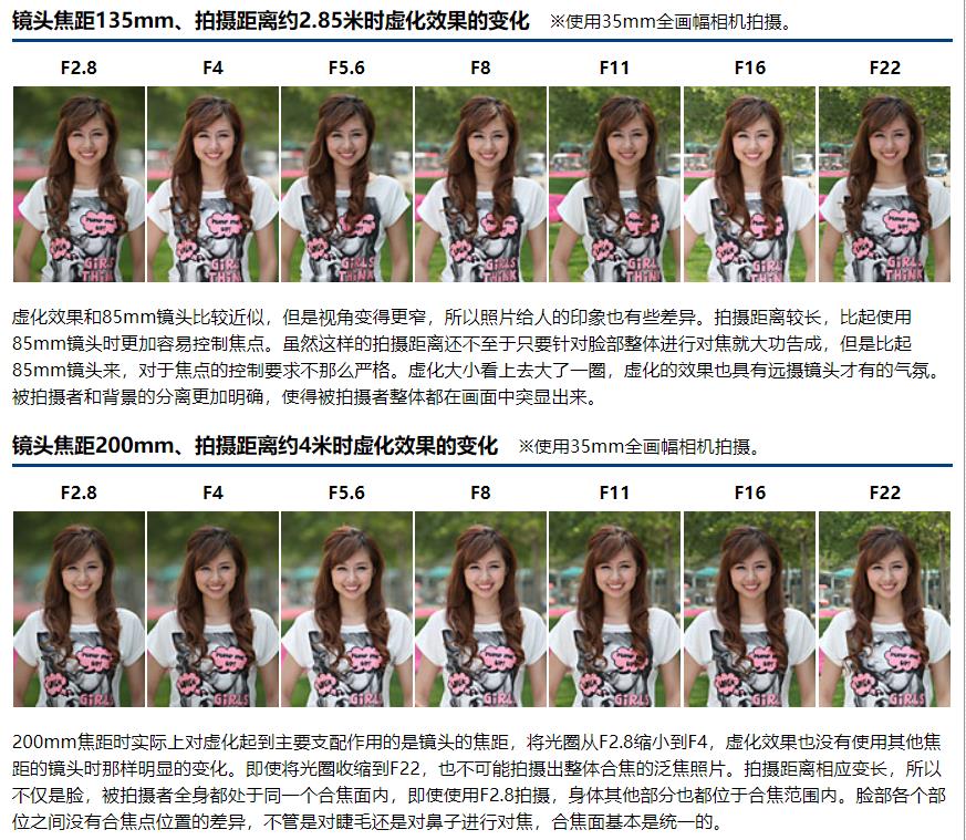 焦距、拍摄距离、光圈值和虚化的关系可以算出。但是,实际上拍摄起来就会发现背景的形状和颜色也会左右整张照片给人的印象,所以这也是一个复杂的问题。另外,被拍摄者和背景之间的距离也和虚化有关。如果想要较大地虚化背景,应该尽可能使用焦距长、大光圈的镜头,同时还应该慎重选择背景的色调和形状。为了增强虚化的氛围,可以尝试着在虚化中加入高光部分,它能让整张照片看起来更加明快,更有利于利用虚化效果。从控制合焦点位置的角度出发,使用比最大光圈收缩几级的光圈拍摄,可以获得较大的景深,拍摄起来比较不容易失败。然而,镜头的光圈值会给虚化带来很大的影响,所以使用最大光圈附近的光圈值拍摄是获得较强虚化的基本原则。镜头焦距越短,虚化就越容易直接受到光圈值的影响,在使用这样的镜头时哪怕收缩一级光圈也会带来明显差异。而使用远摄镜头主要是利用长焦距拍出虚化效果。但是,多用于拍摄人像的50-85mm焦距的镜头实质上是光圈值支配着虚化效果。