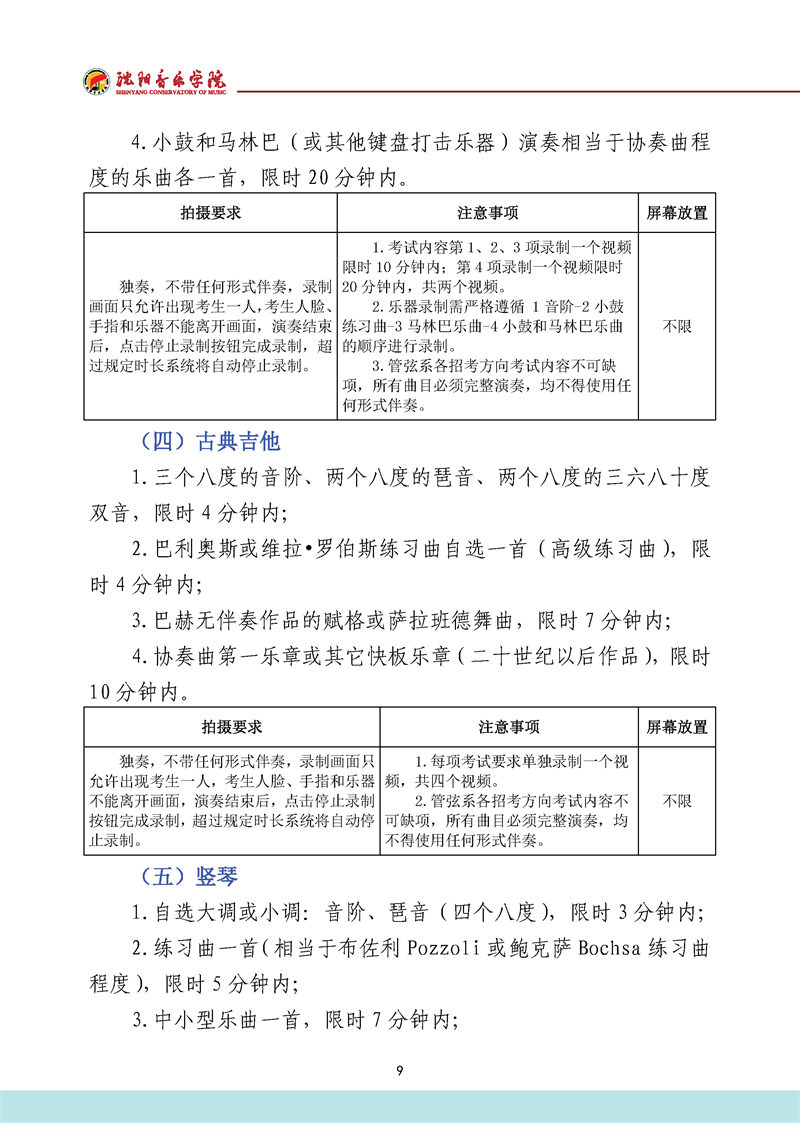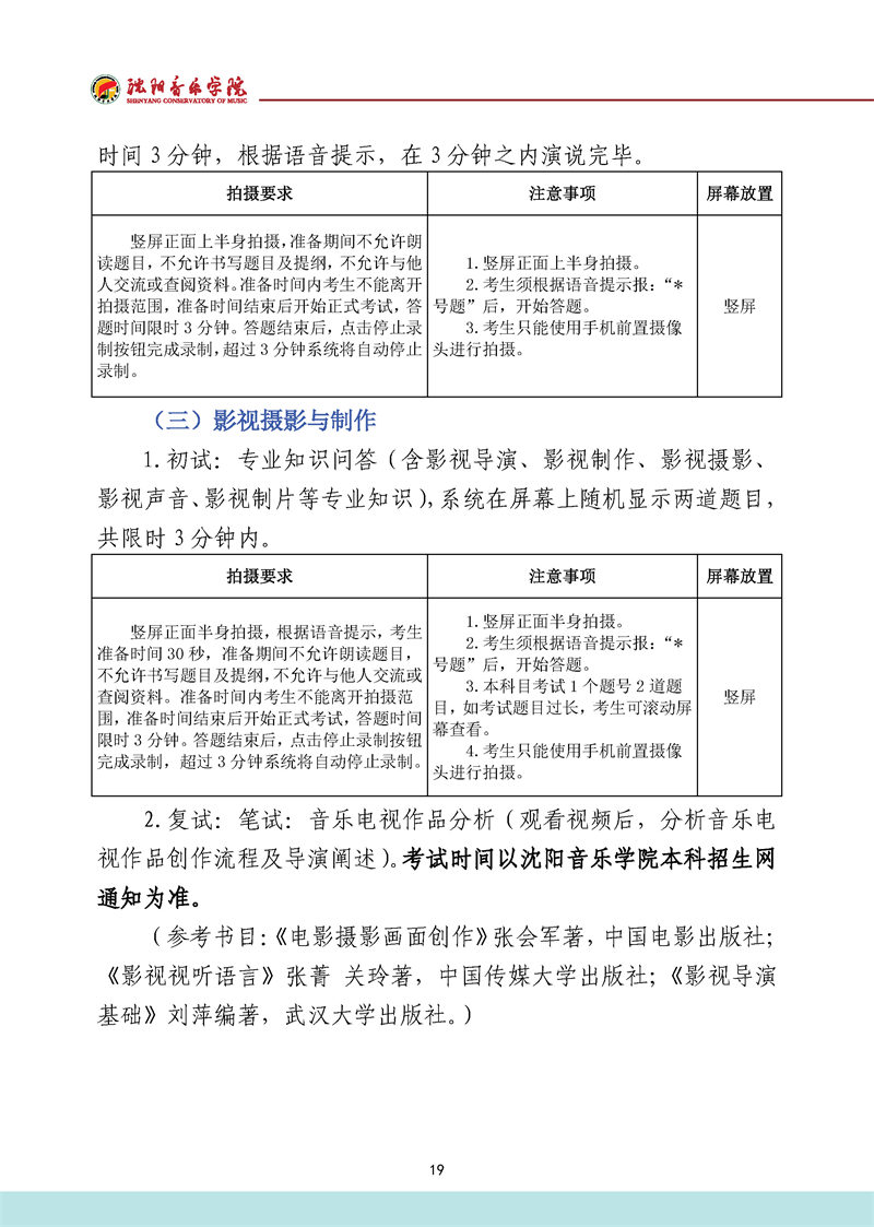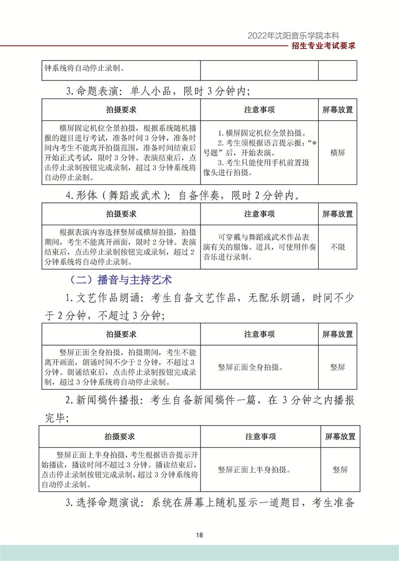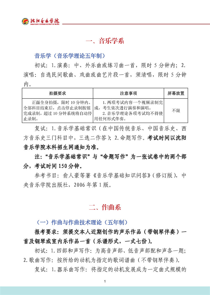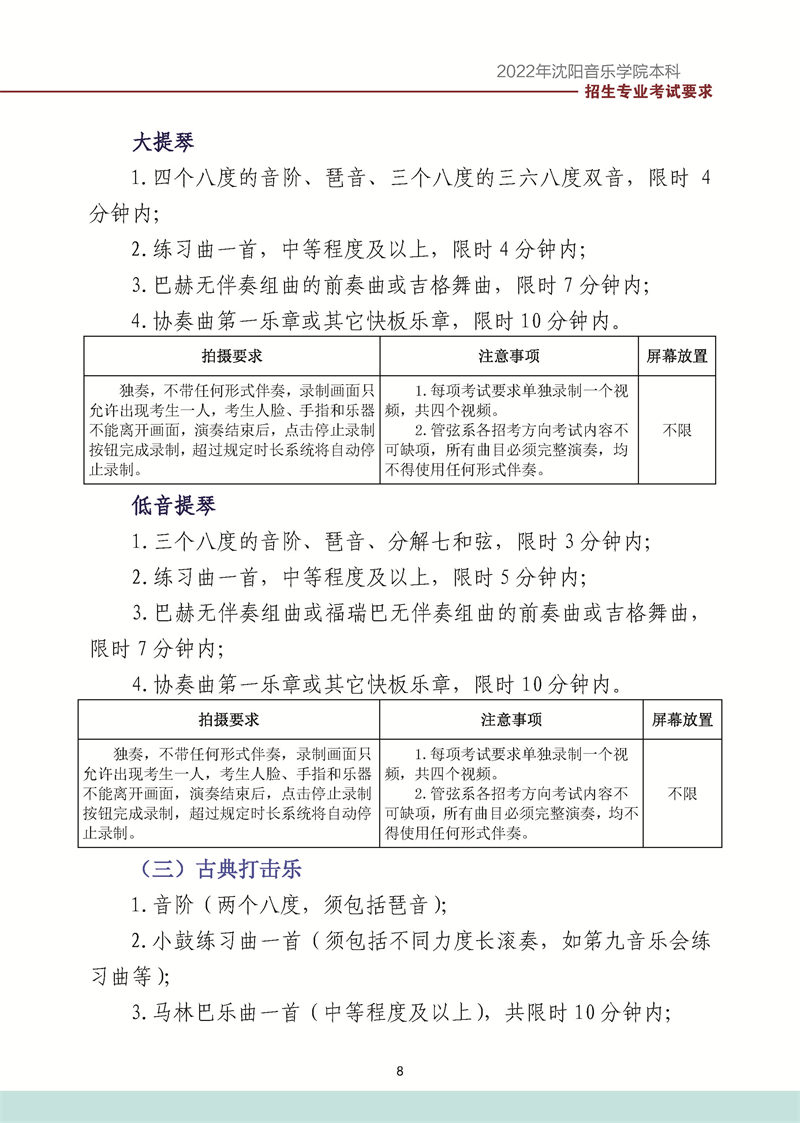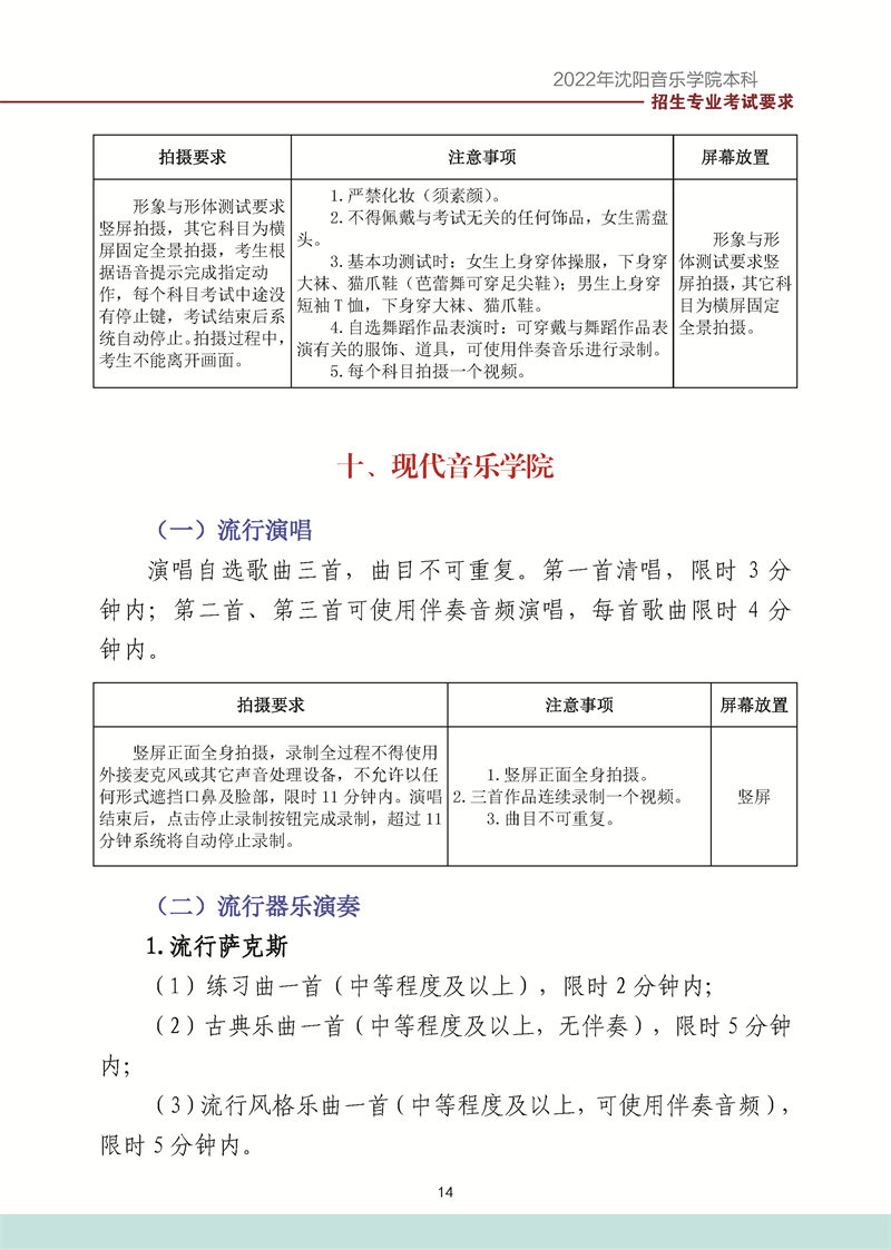 沈阳音乐学院2022年本科招生考试要求