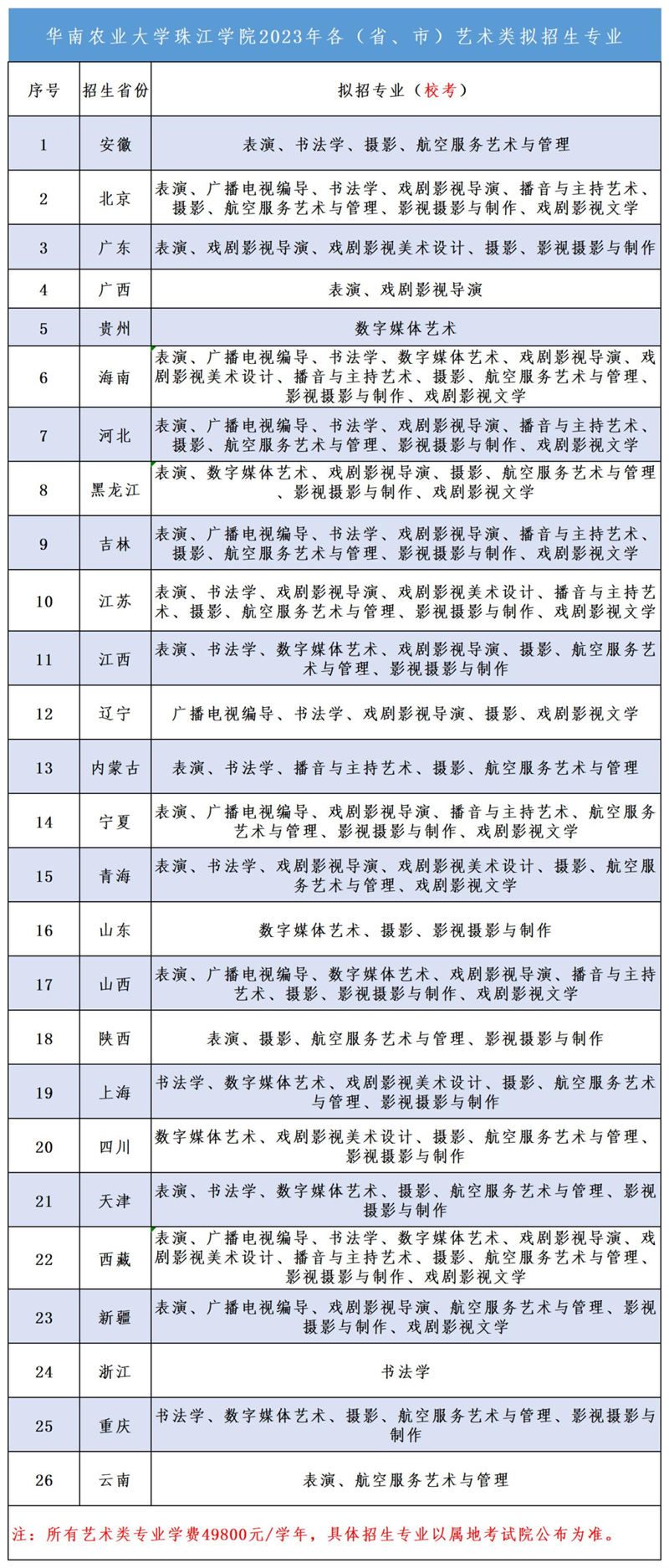二、2023艺术类拟招生专业一览