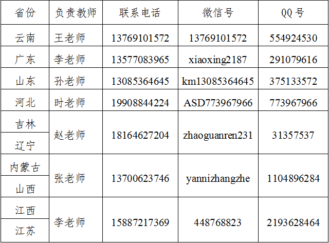 校考省份及负责人