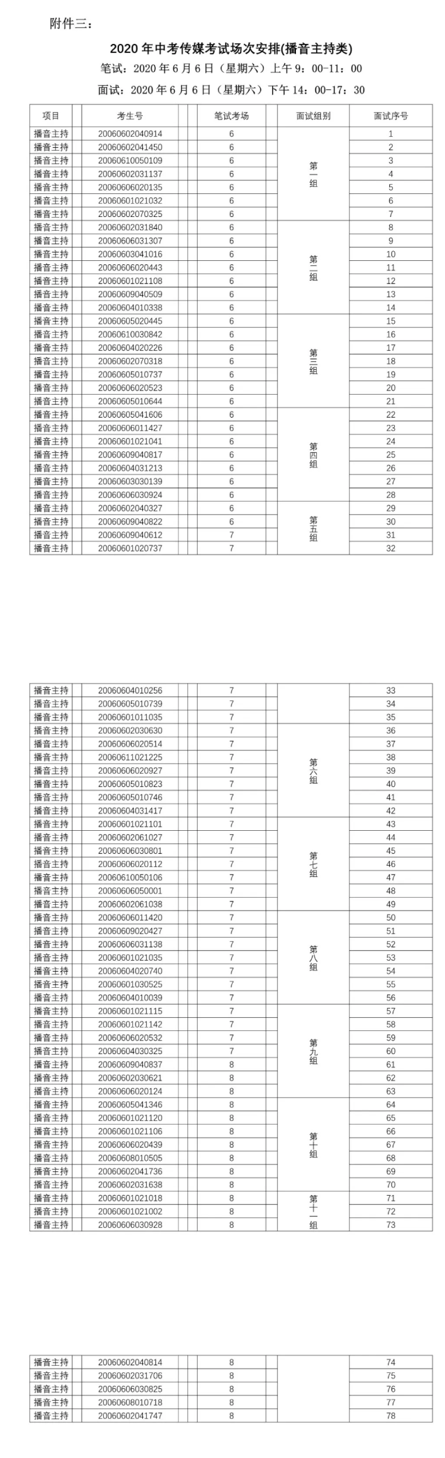 顺德区2020年高中阶段学校招生统一考试普通高中传媒专业生术科考试安排