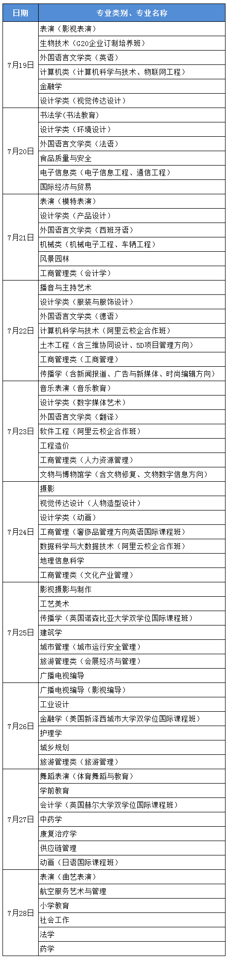 为方便考生和家长了解我校2020年招生政策、各招生专业的培养特色、专业优势、发展前景等详细内容,7月19日—28日每天中午12:30招办教师直播志愿填报辅导,每天晚上19:30,各专业导师直播详解专业,助力考生专业选择。