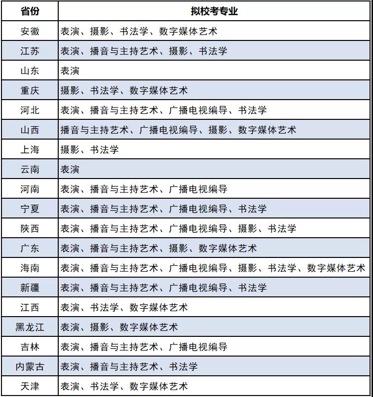 备注:最终校考专业以当地教育主管部门公布为准。