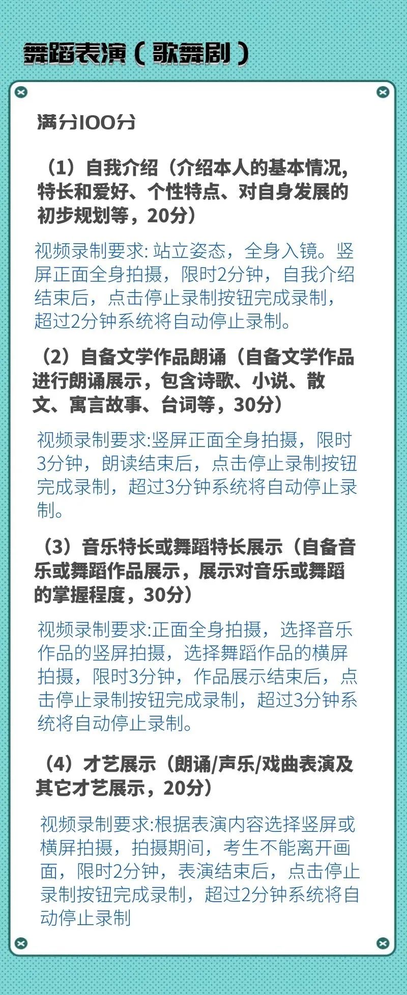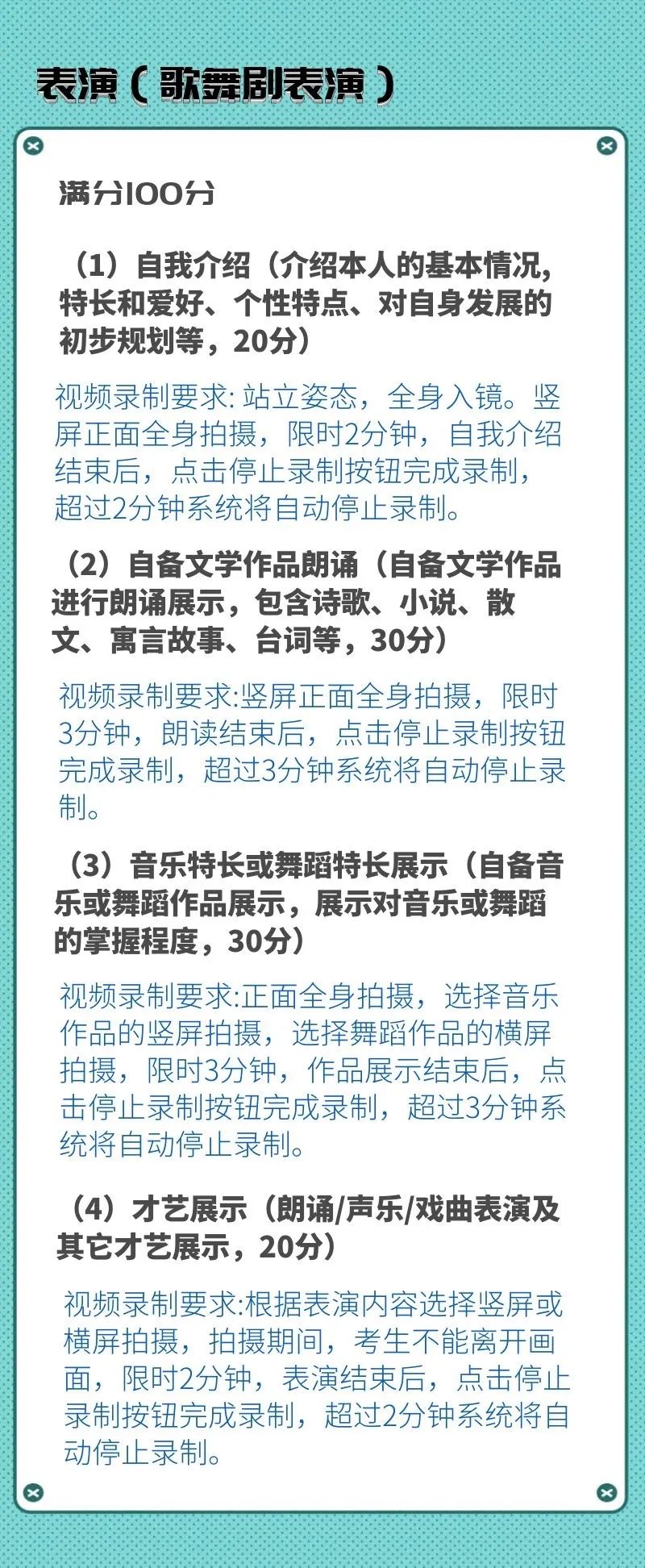 校考专业考试科目及录制要求