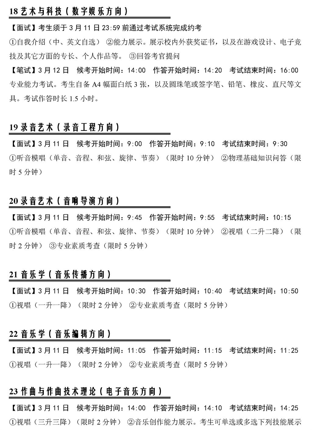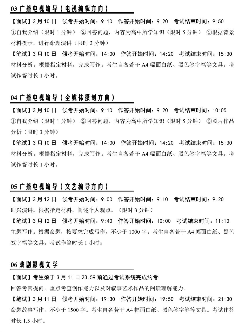 中国传媒大学2021年艺术类本科招生考试三试考试安排