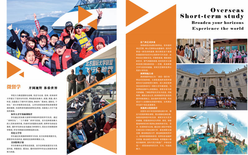 为学生提供更加多元、更加丰富的名企实习、志愿服务、国际交流、专业能力锻炼等机会。借助国际导师、海外实习、国外合作院校课程等优质资源,丰富学生履历,提升学生留学综合实力,增强学生申请海外名校的竞争力。