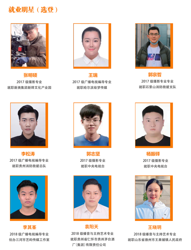 本专业核心课程:曝光控制与技巧、图片摄影基础、图片摄影后期、摄影造型、大师作品分析、特种行业摄影、影视后期制作、纪录片创作等。