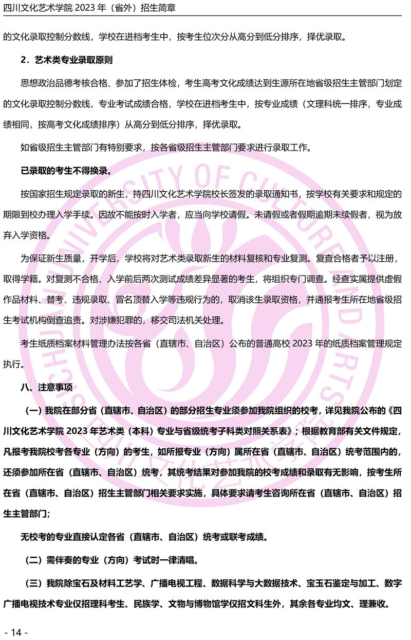 四川文化艺术学院创办于2001年,2006年经教育部批准为面向全国招生的大学本科层次的独立学院,2014年经教育部批准转设为独立设置的民办普通本科学校,定名为四川文化艺术学院。2016年被四川省教育厅列为四川省本科院校整体转型发展改革试点院校,并当选为“四川省应用型本科高校联盟”首届理事单位。