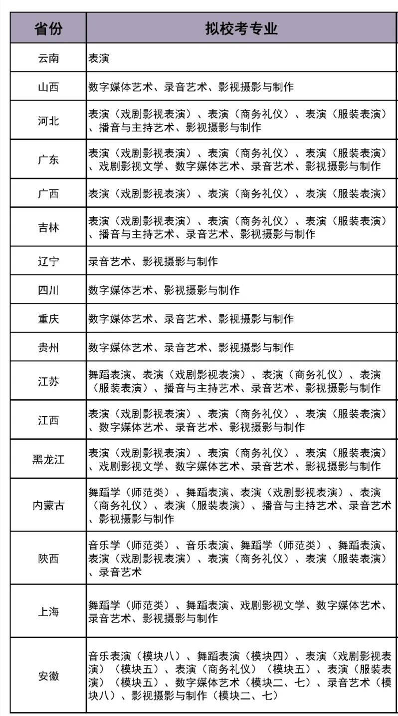 2023校考省份及专业