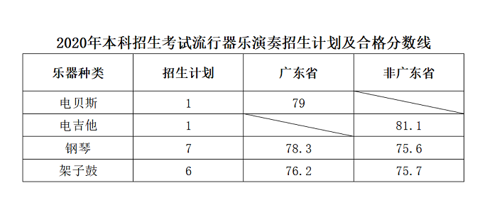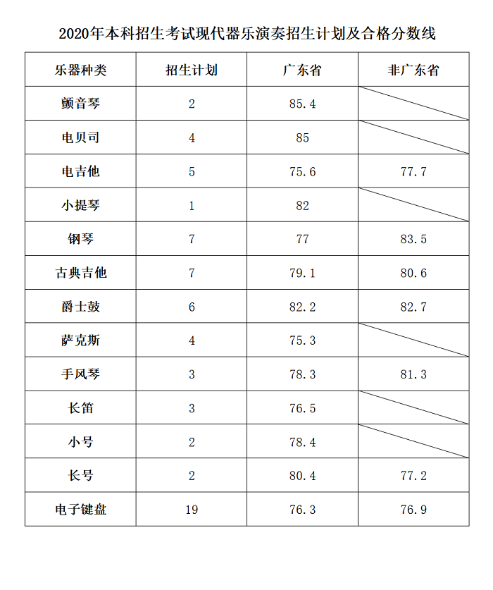 2020年星海音乐学校本科招生考试各专业招生计划及合格分数线​