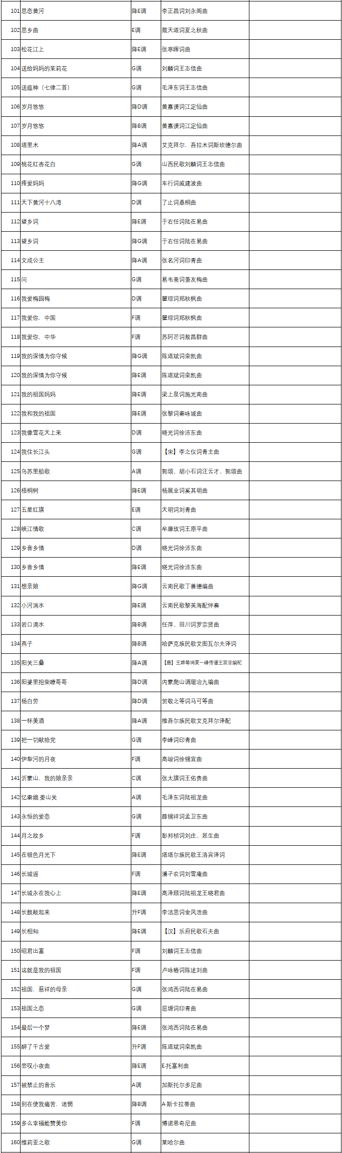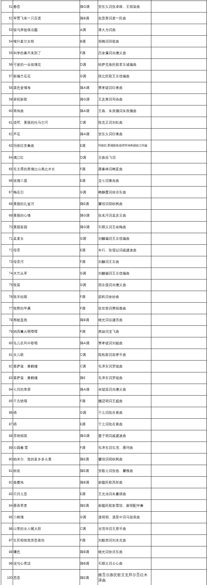 为落实立德树人根本任务,进一步提高我区普通高校艺术类专业招生工作水平,更好服务高校选材,我们组织专业力量对《2018年宁夏艺术统考音乐类声乐曲目库》进行了优化,现予以公布,2022年普通高校艺术类专业考试开始启用。