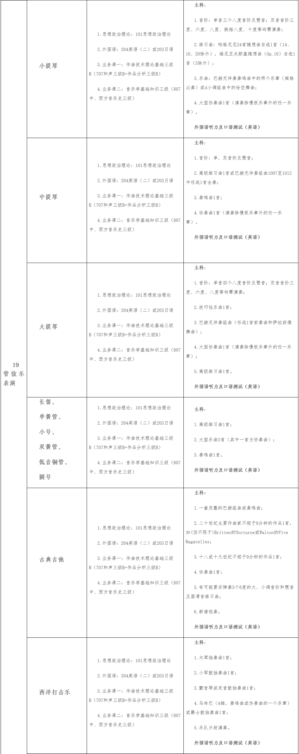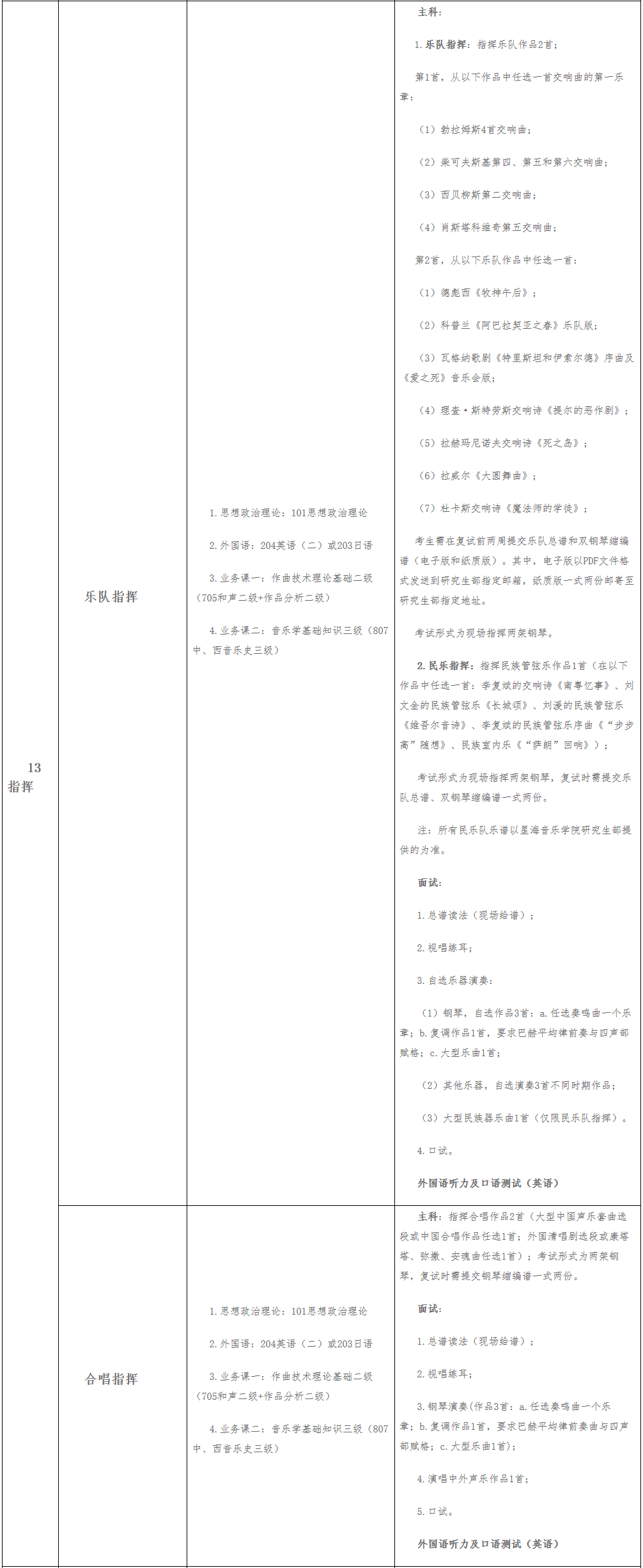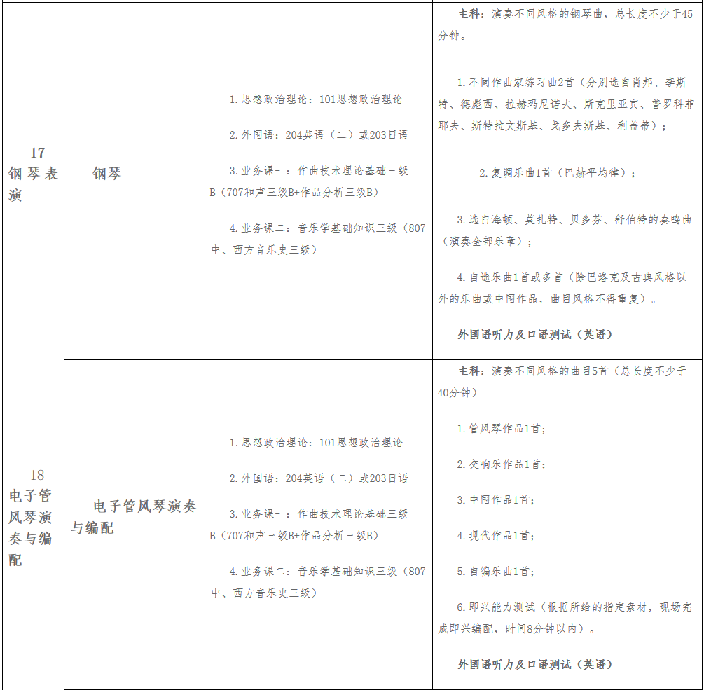 2.初试科目中的和声、作品分析、中国音乐史、西方音乐史等专业基础课程,其考试内容按不同专业方向的难易程度分级确定考试标准。