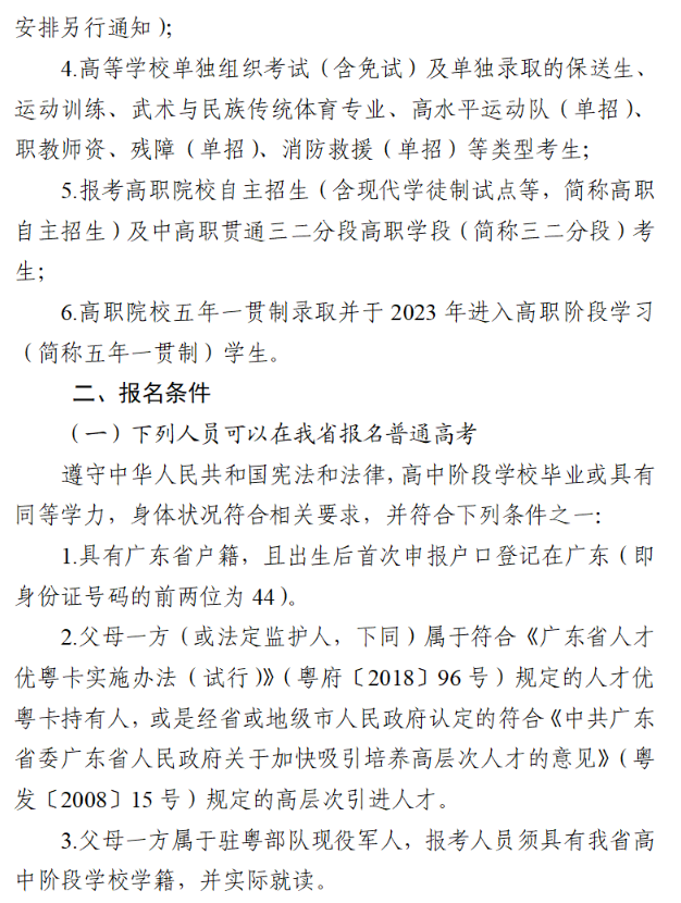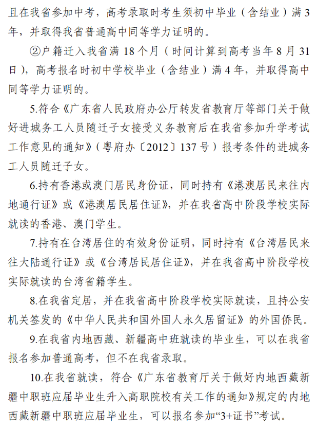 5. 符合《广东省人民政府办公厅转发省教育厅等部门关于做 好进城务工人员随迁子女接受义务教育后在我省参加升学考试 工作意见的通知》(粤府办〔2012〕137号)报考条件的进城务 工人员随迁子女。