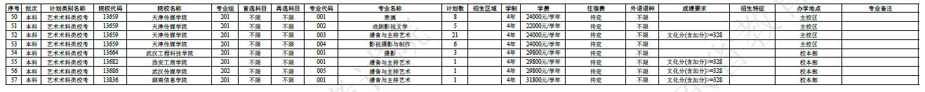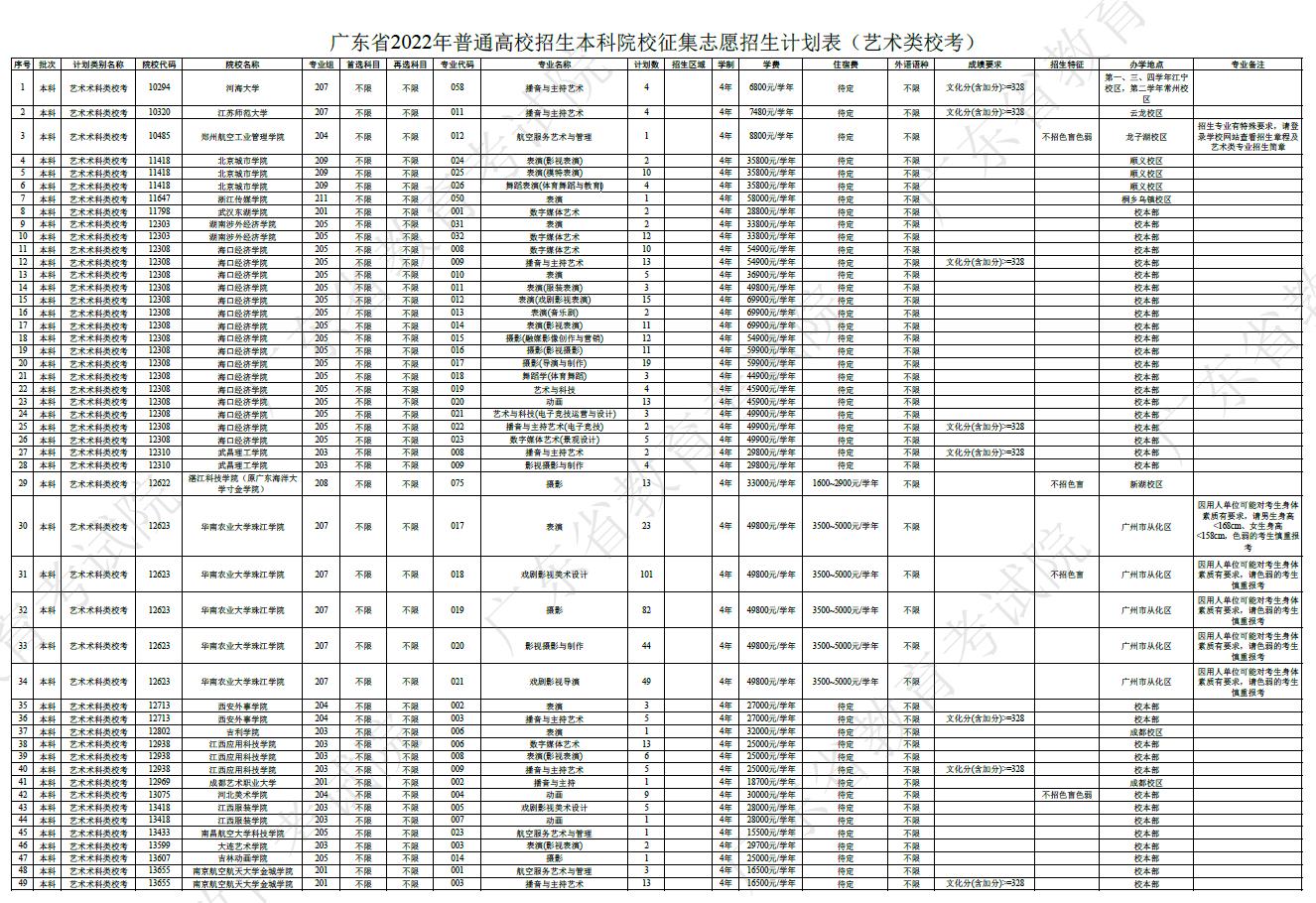 广东省2022年普通高校招生本科院校征集志愿招生计划表(艺术类校考)