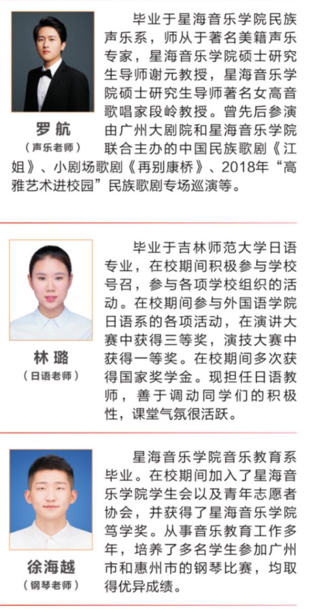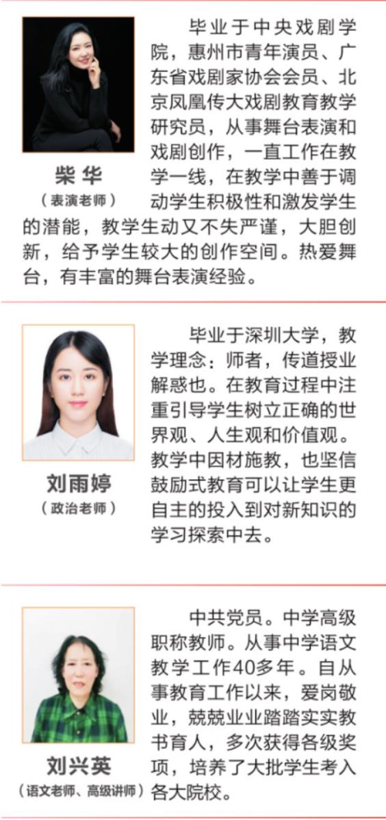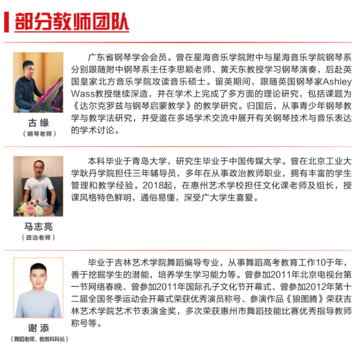 惠州市惠州艺术学校2023年秋季招生简章|开设舞蹈高考班、音乐高考班、美术高考班、商务日语高考班、书法高考班、幼儿保育等专业,培养了大批艺术特长生考入全国各大知名院校,并多次在省市组织的比赛当中荣获一等奖。多年来输送了大量优秀的学生走向社会,得到了社会各界的肯定和赞誉