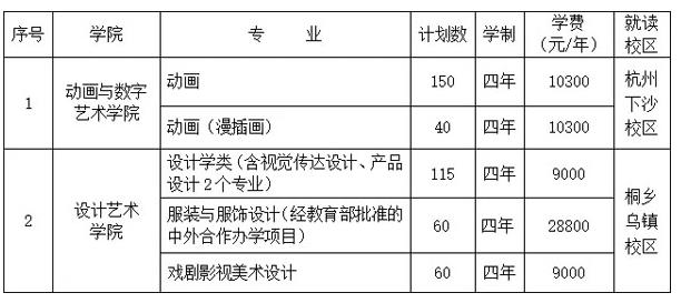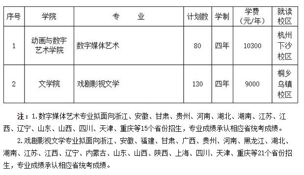 注:动画/动画(漫插画)/设计学类(含视觉传达设计、产品设计)/戏剧影视美术设计/服装与服饰设计(中外合作办学)专业拟面向浙江、安徽、北京、福建、甘肃、广东、广西、贵州、河北、河南、黑龙江、湖北、湖南、吉林、江苏、江西、辽宁、内蒙古、宁夏、山东、山西、陕西、上海、四川、天津、新疆、云南、重庆等28个省份招生,专业成绩承认相应省统考成绩。
