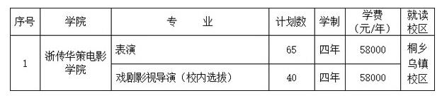 注: 1.表演专业拟面向浙江、安徽、福建、贵州、湖北、湖南、辽宁、四川、重庆等9个省份招生,专业成绩承认相应省统考成绩;北京、甘肃、广东、河北、河南、黑龙江、吉林、江苏、江西、内蒙古、山东、山西、陕西、上海、天津、新疆、云南等17个省份的考生,可按各省考试院(招生办)规定选择在杭州考点参加我校组织的考试。