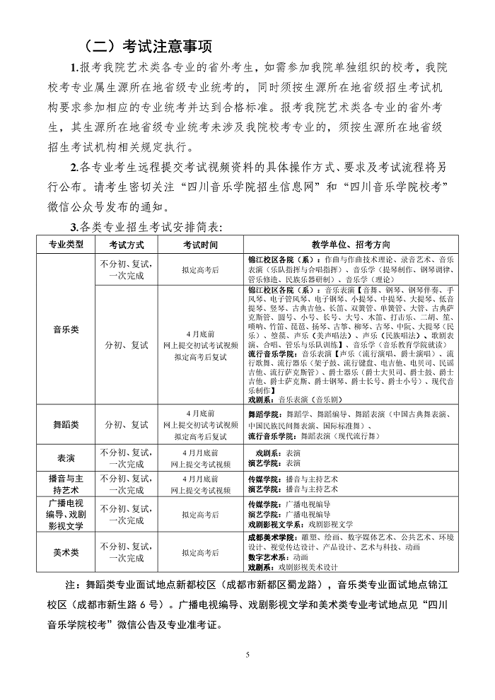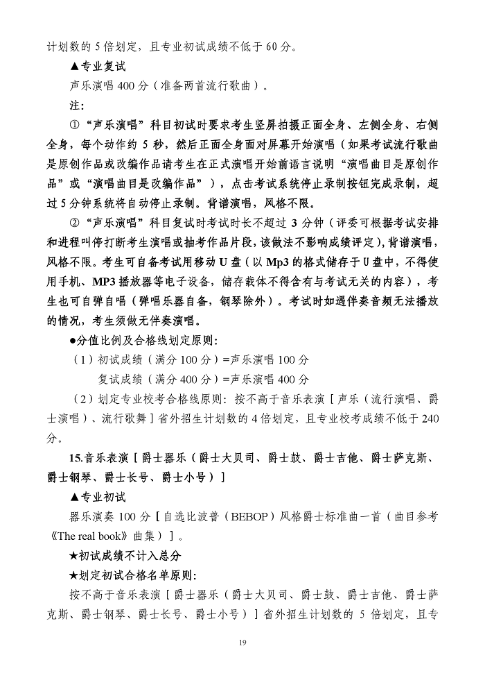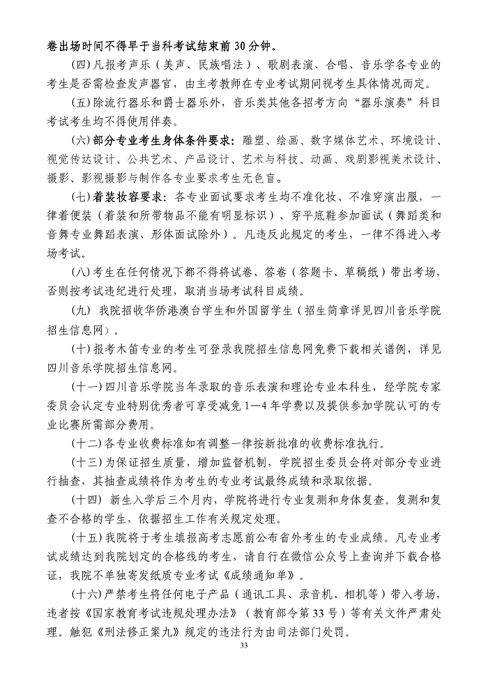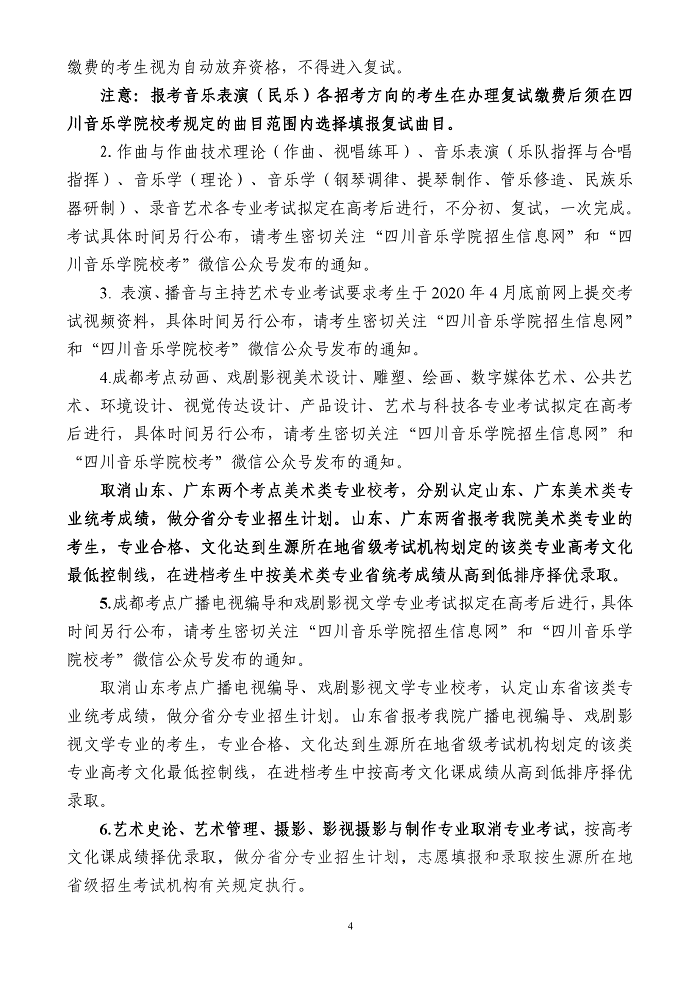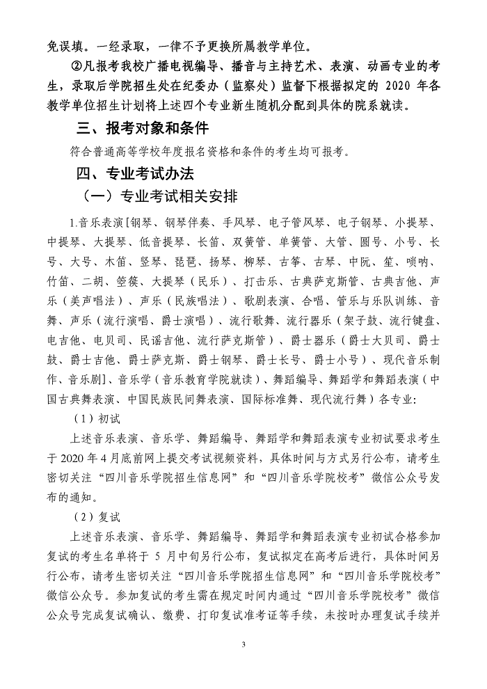 四川音乐学院2020年省外本科招生简章(调整版)