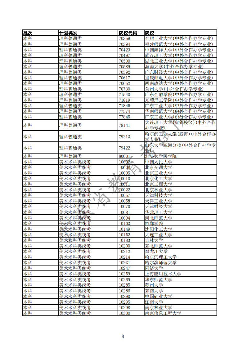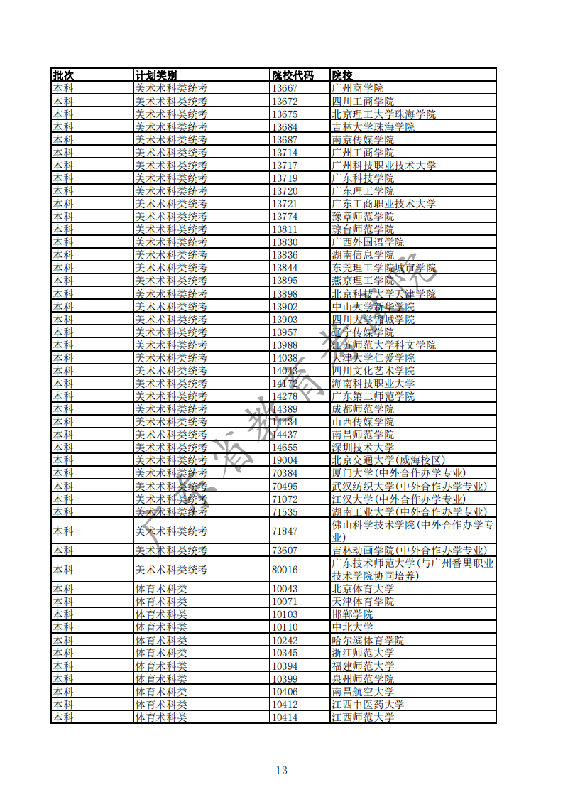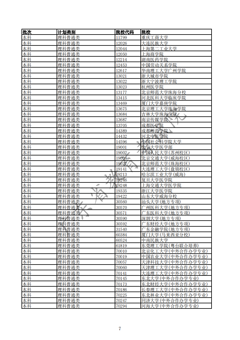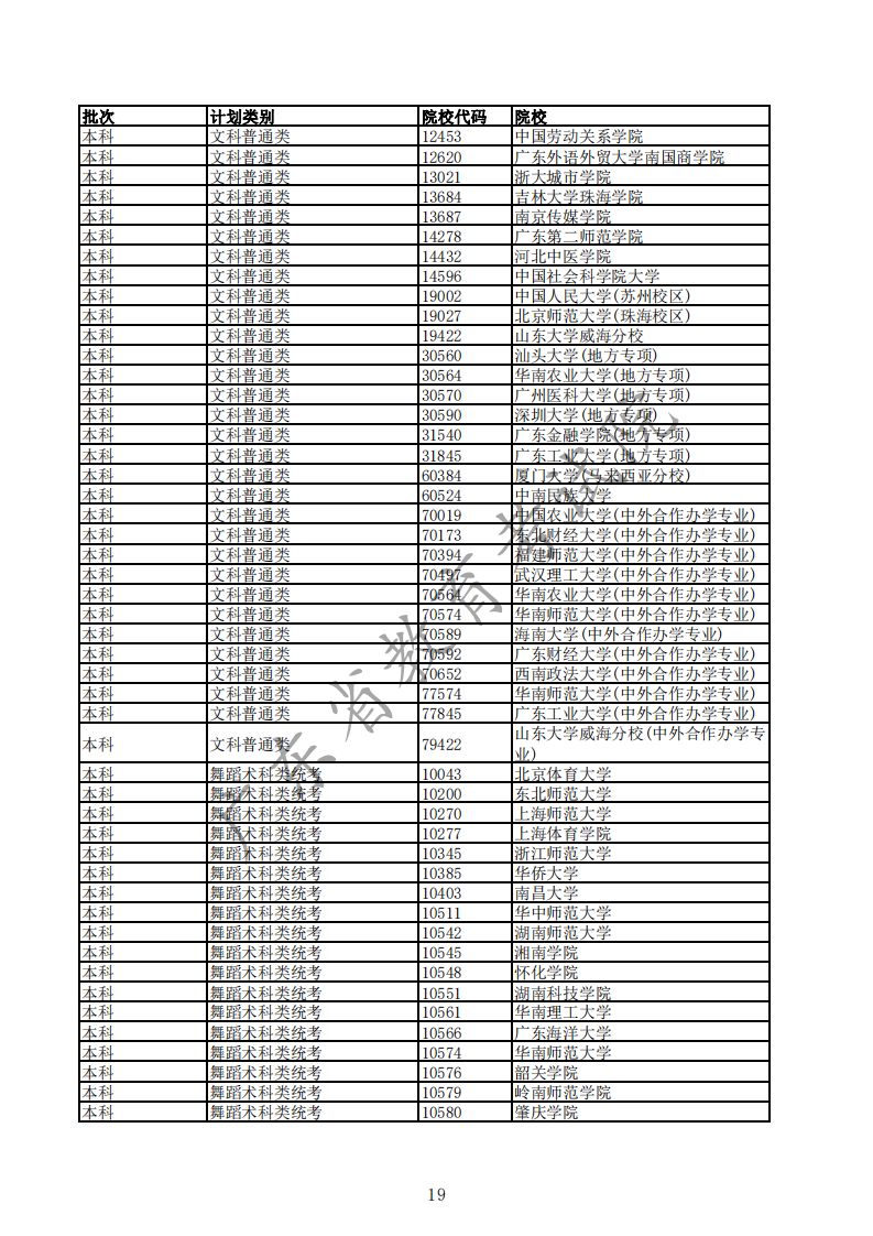 2020年广东省高考已完成科类录取的部分院校名单(截至8月17日12时)