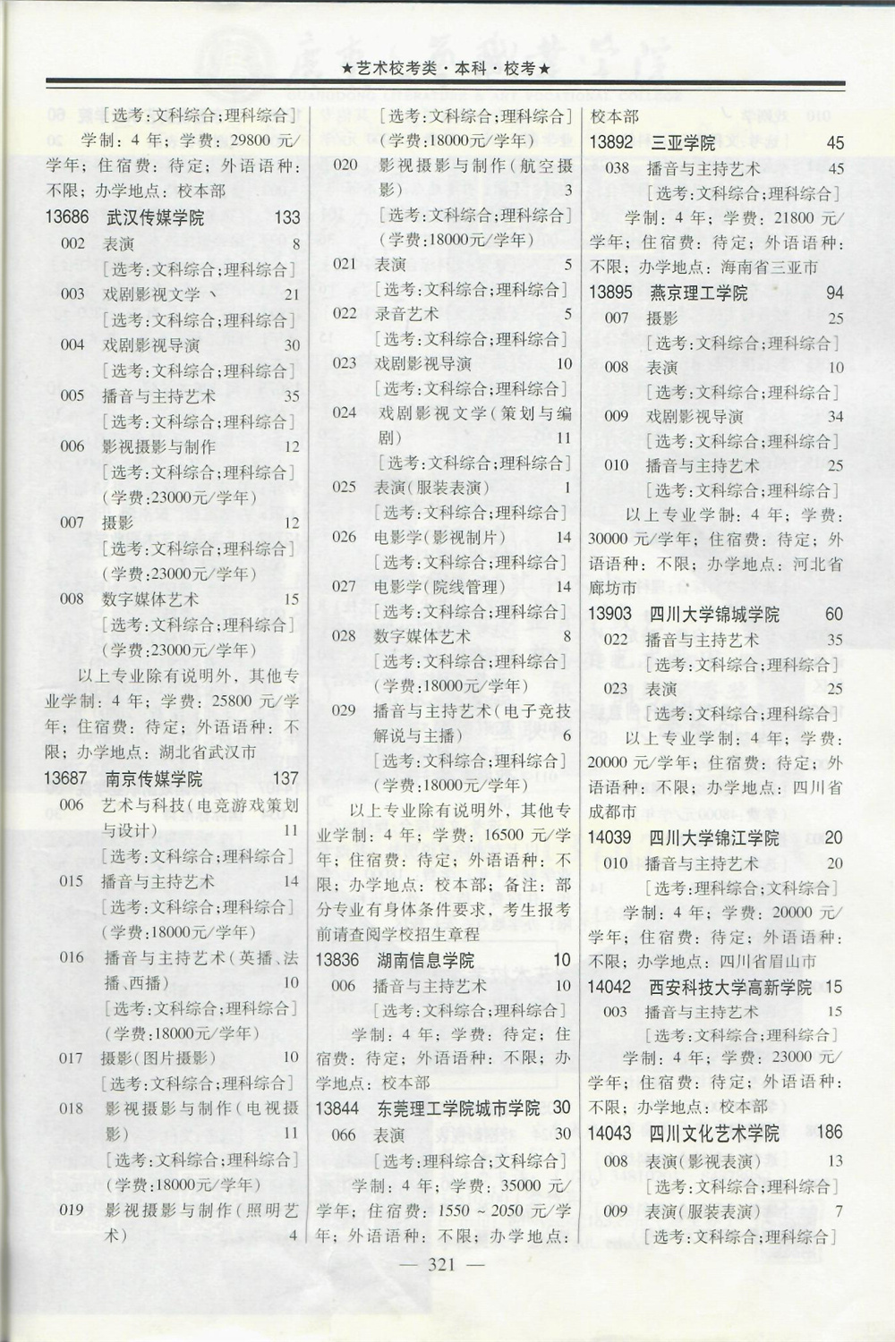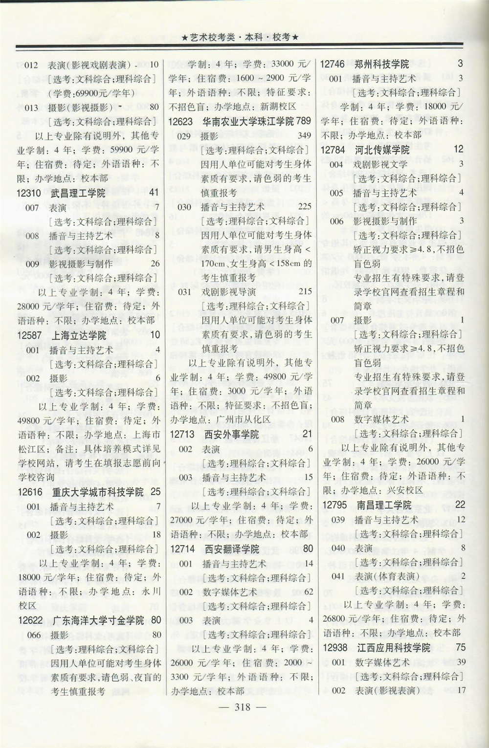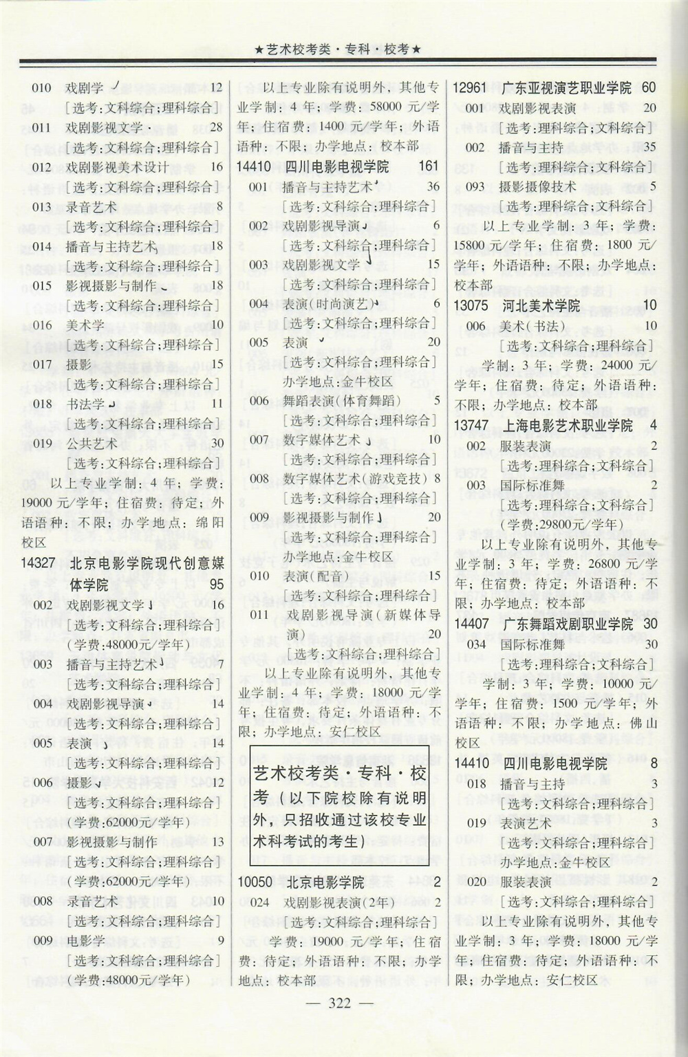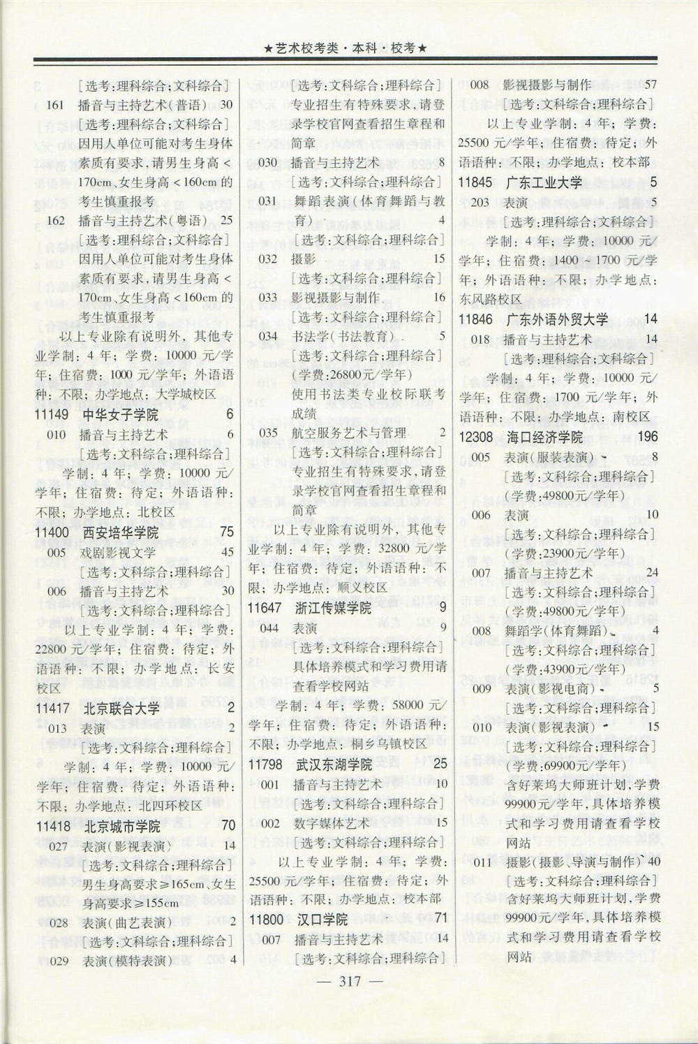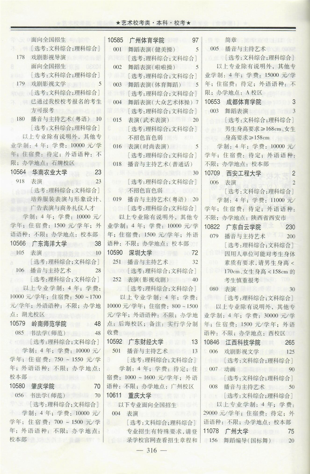 2020年在广东招生音乐传媒等校考专业院校名单专业学费