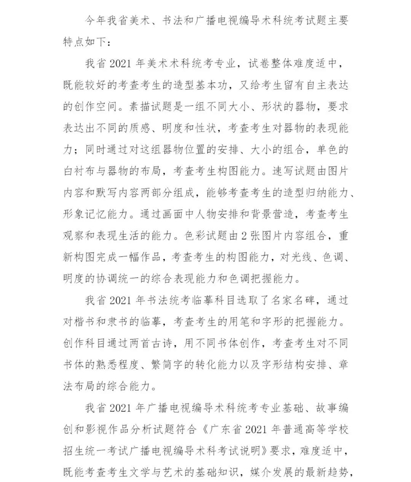 广东省2021年普通高考美术、书法和广播电视编导术科统考试题评析