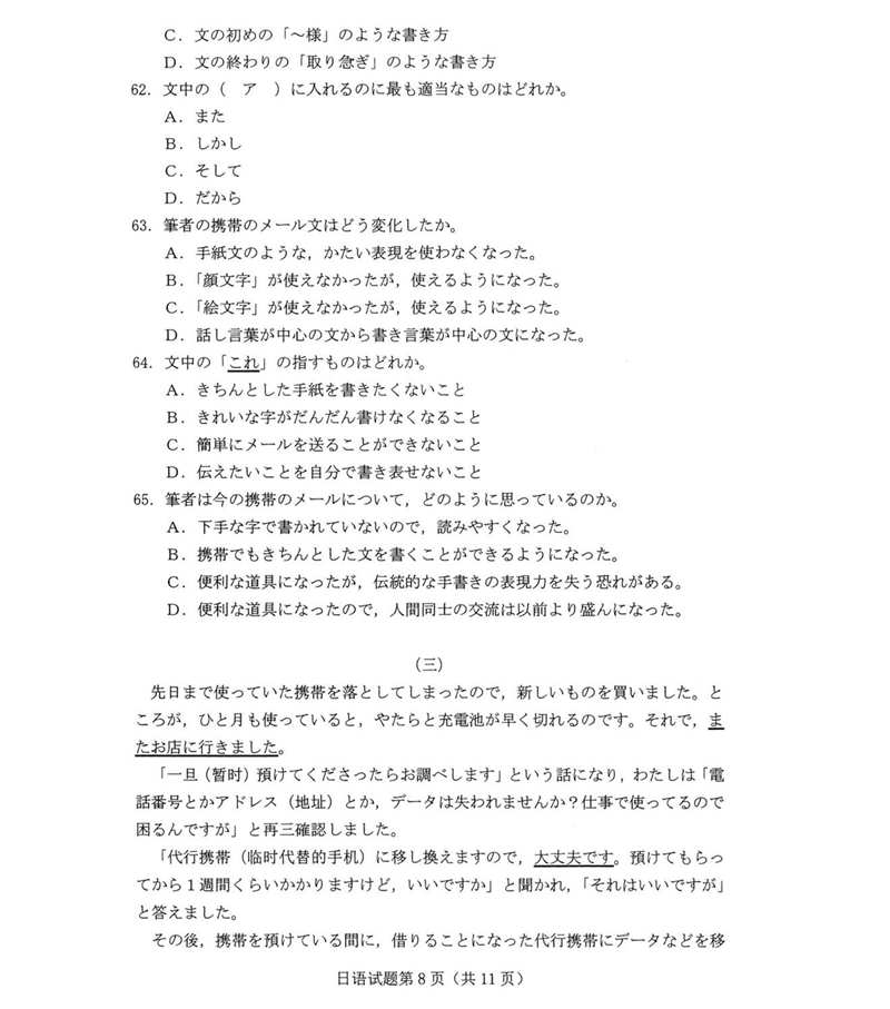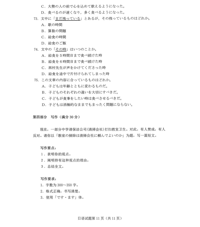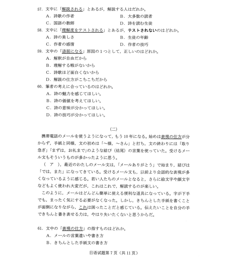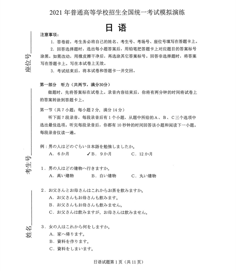 来源:2021年高考适应性考试1月八省联考卷日语卷