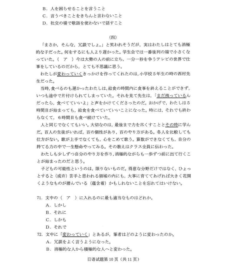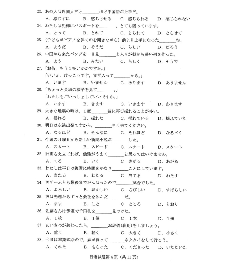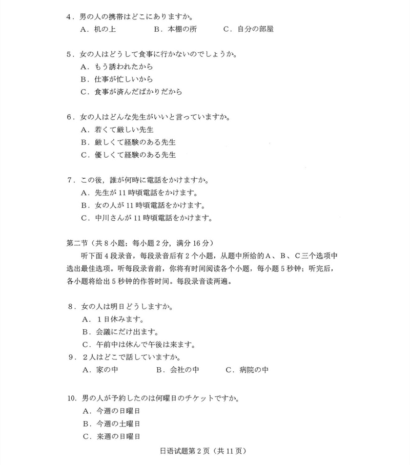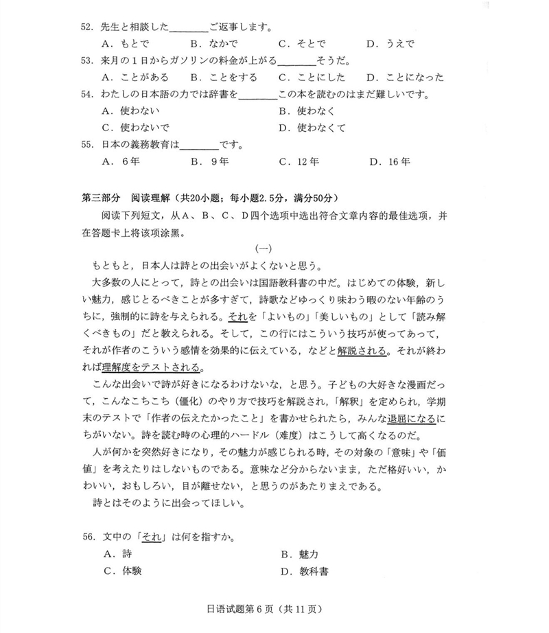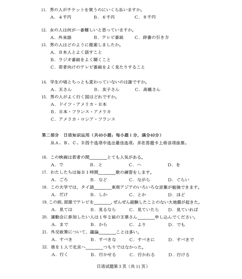 来源:2021年高考适应性考试1月八省联考卷日语卷