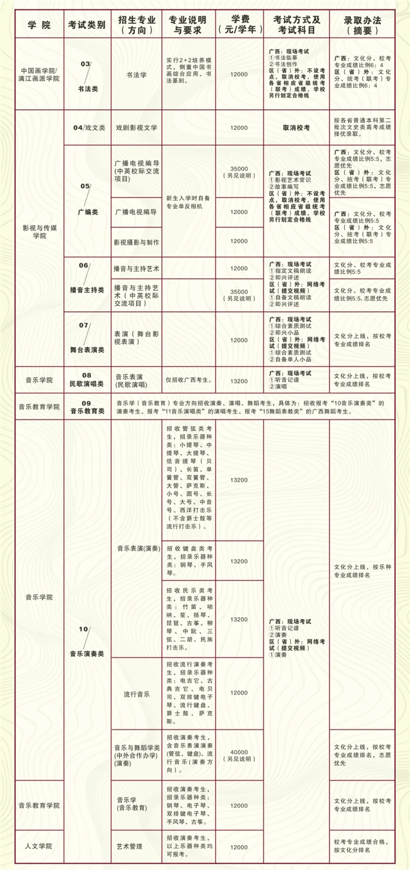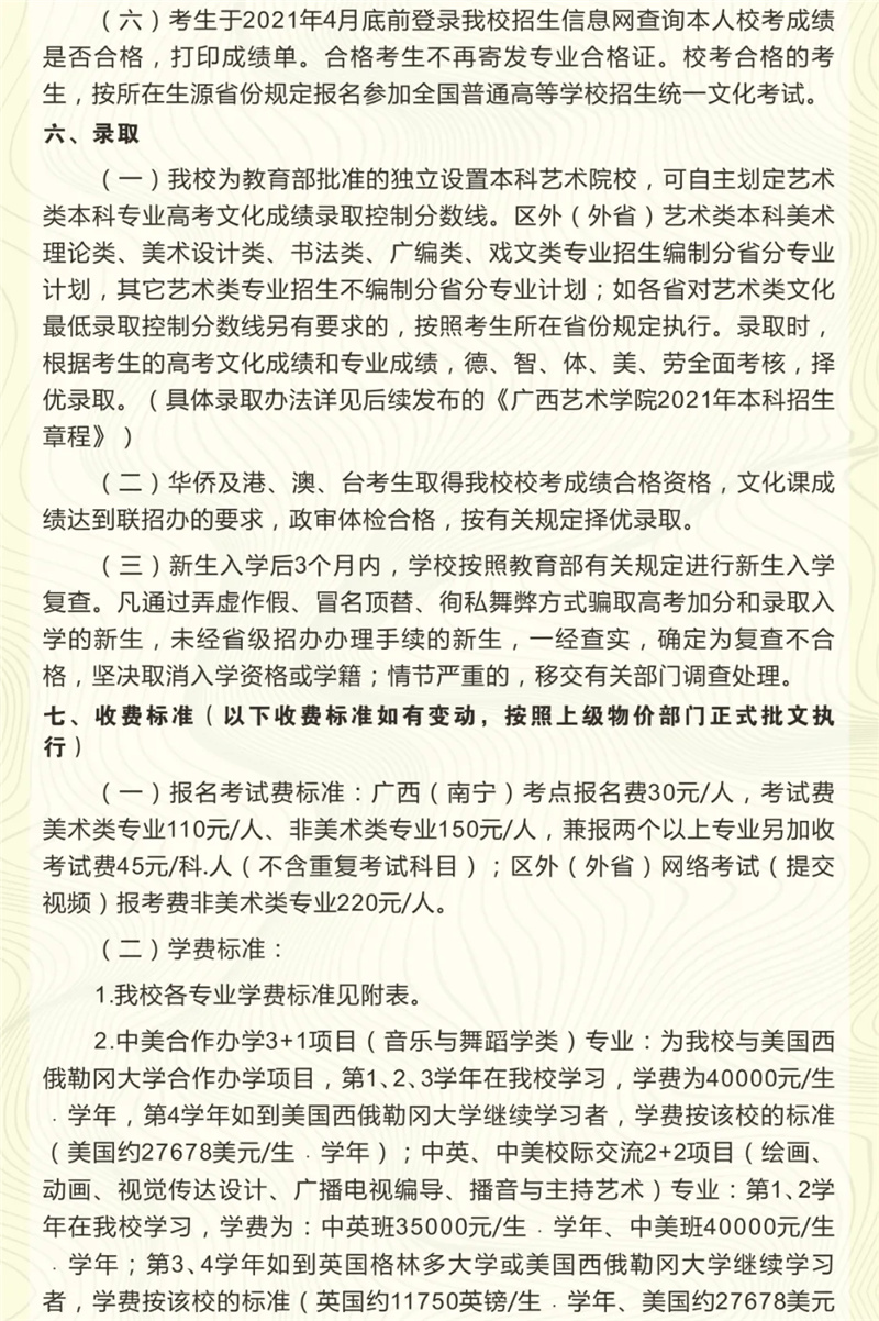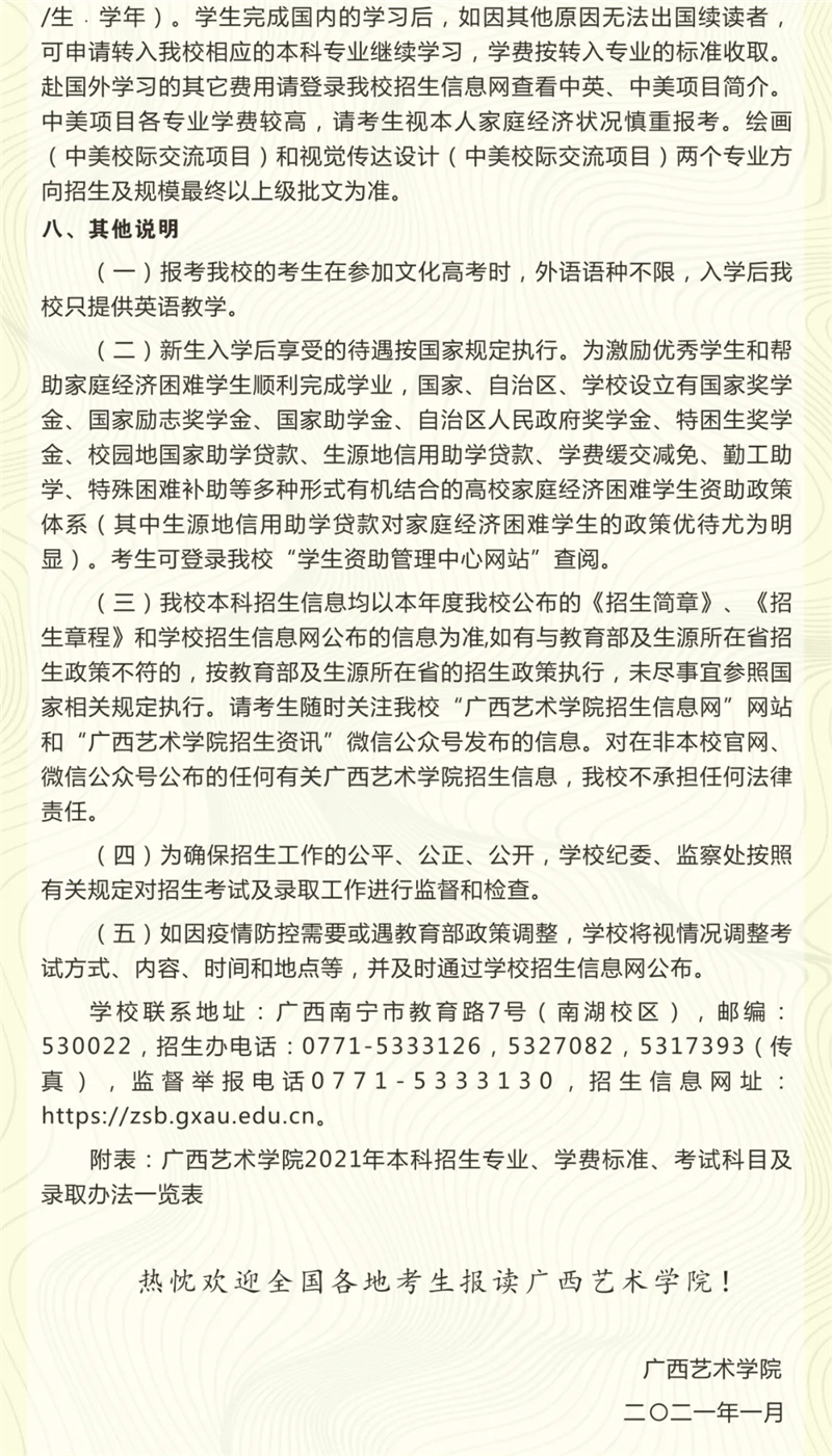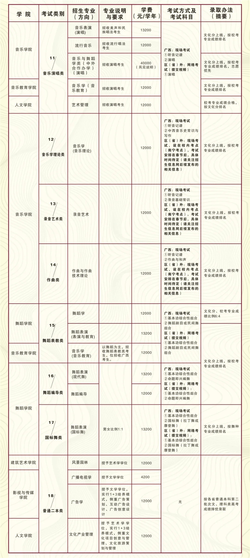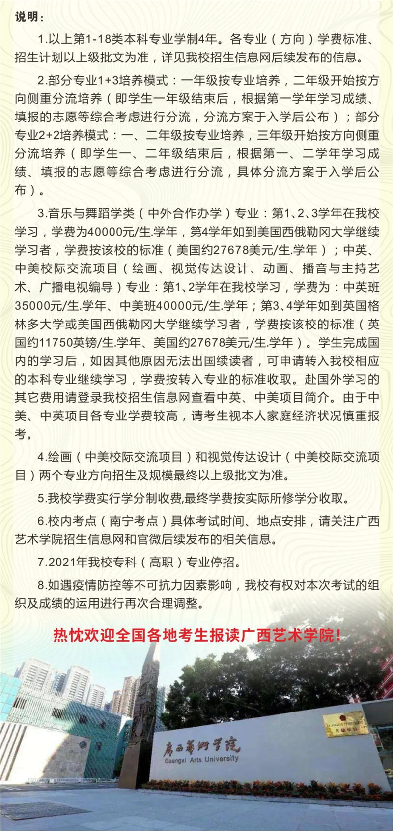 来源:广西艺术学院关于2021年艺术类本科招生简章