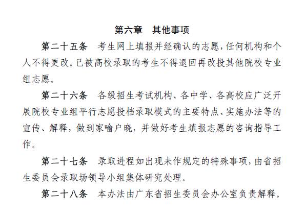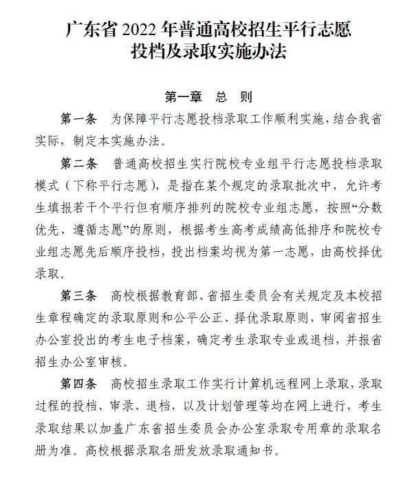 广东省2022年普通高校招生平行志愿投档及录取实施办法