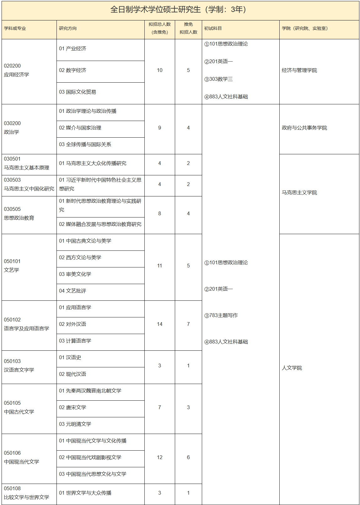 5.对于传播学(专业代码050302)下的“01 国际传播白杨班”方向,2023年只招收推免生。
