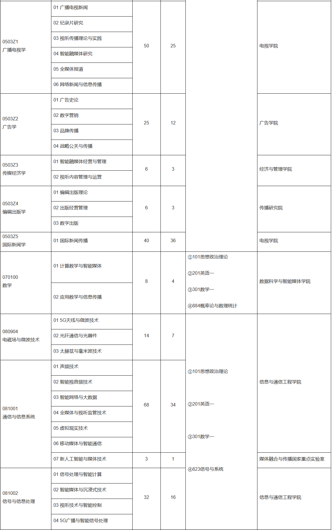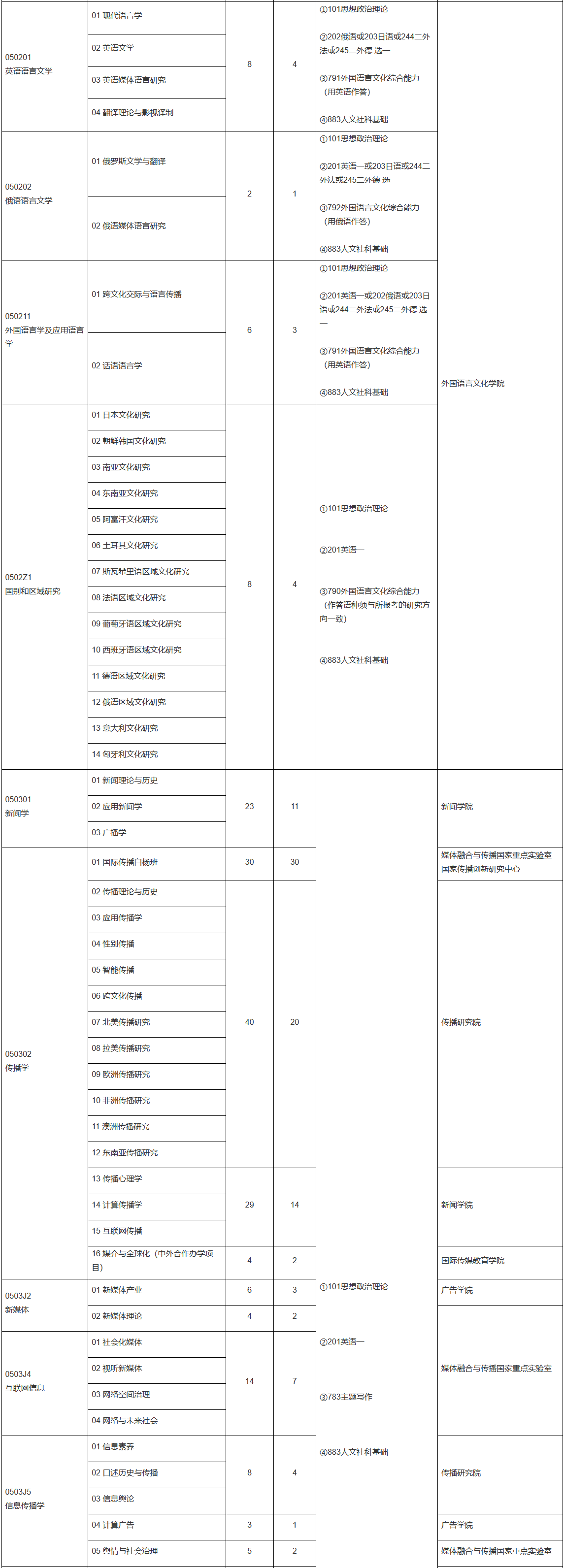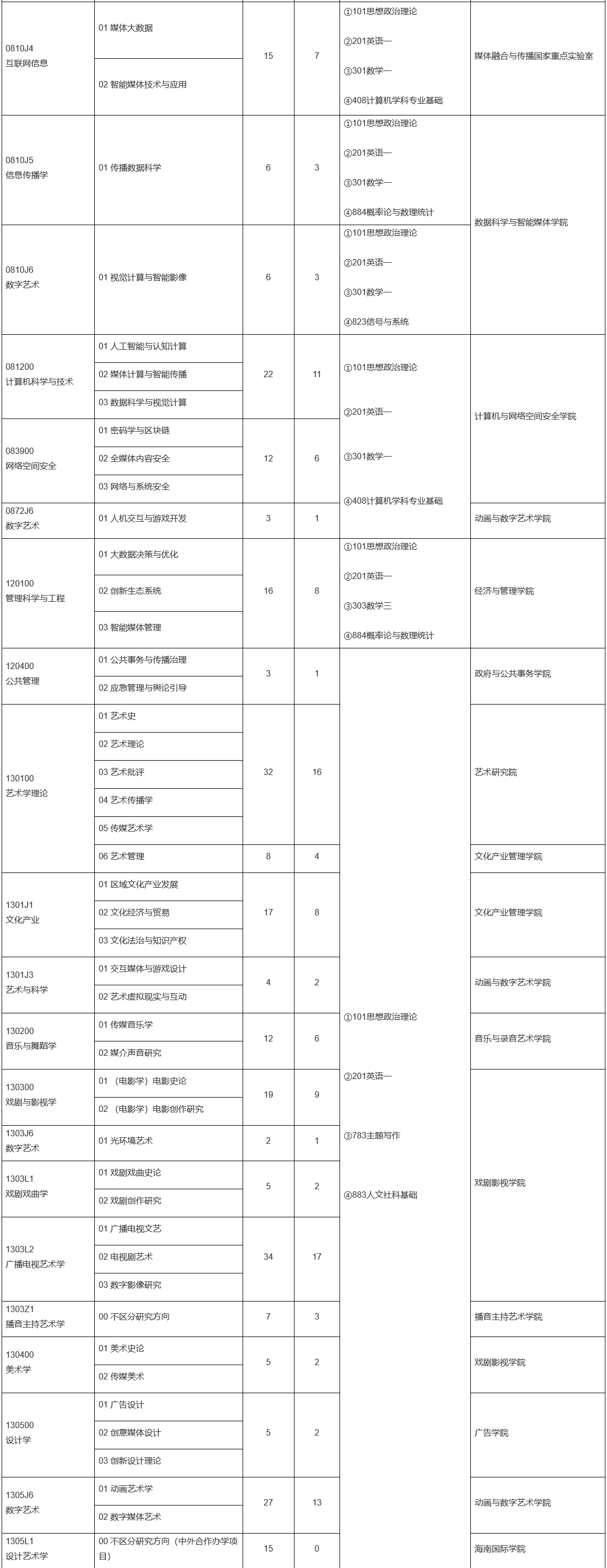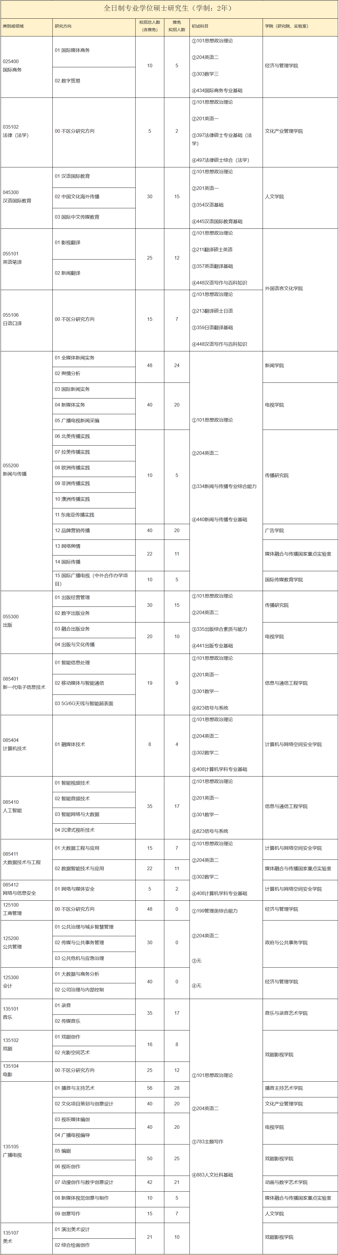 中国传媒大学2023年攻读硕士学位研究生专业目录