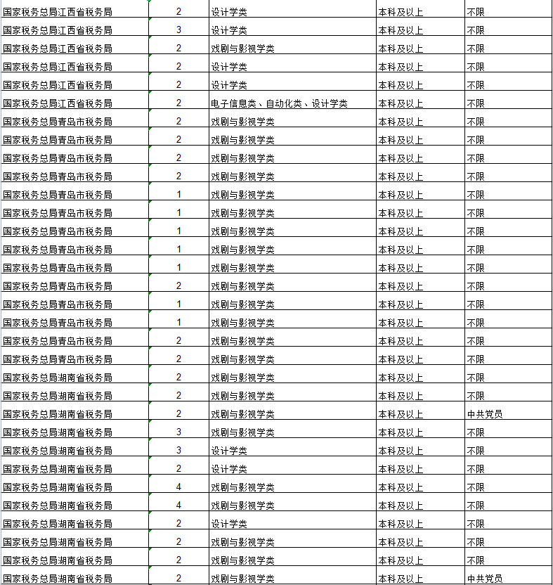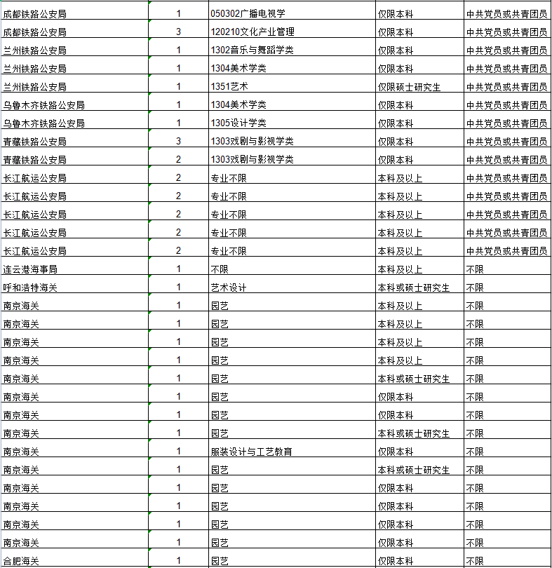 从发布的招聘简章来看,招聘单位为国家档案局、中宣部、中国文联、外交部、公安部、交通运输部、文化和旅游部、国家邮政局,国家文物局、各地铁路公安局、各地海关、各地国税局、各地出入境边防检查总站、国家统计局各地调查总队等。详情如下: