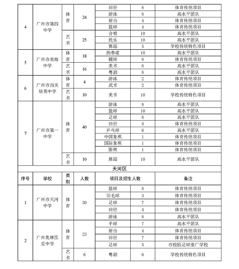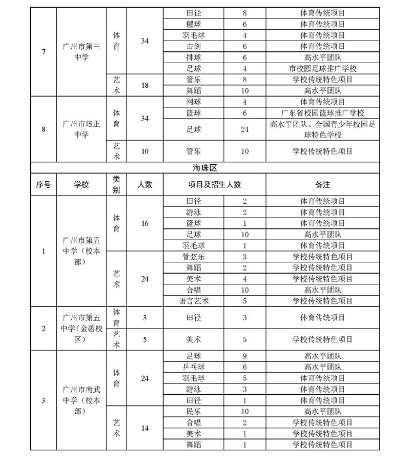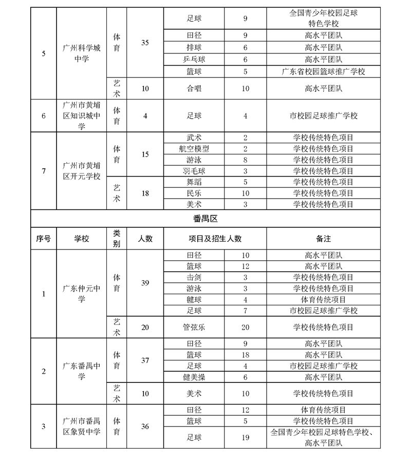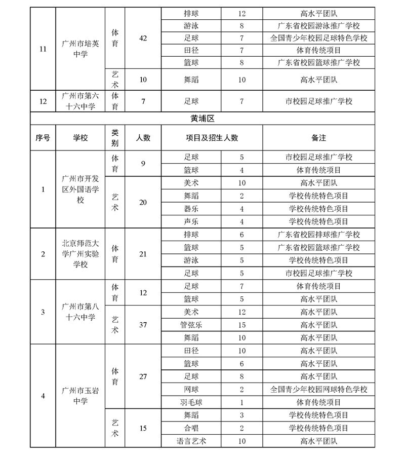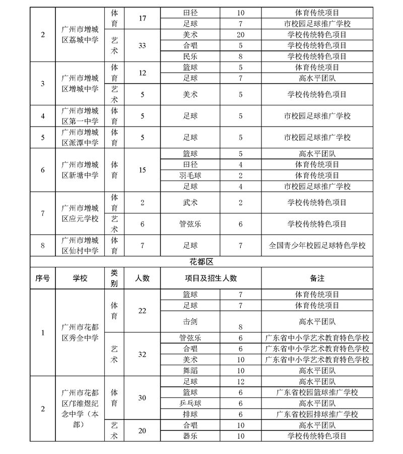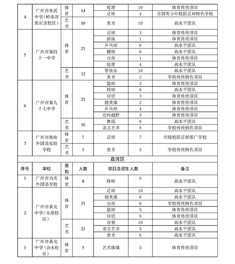 2023年广州市普通高中体育艺术特长生招生计划表