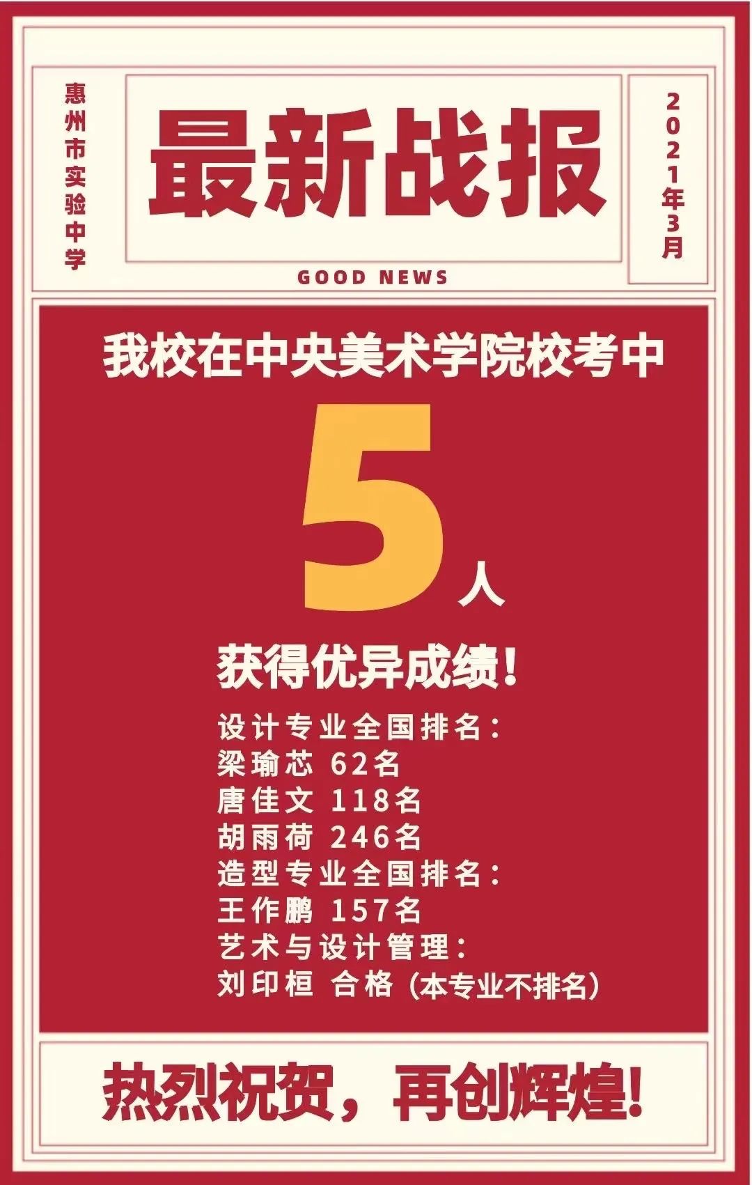 因专业成绩突出,我校先后被列为广州美术学院本科专业考试和广东美术联考惠州市指定考点,目前是广东省美术术科高考惠州市唯一考点。