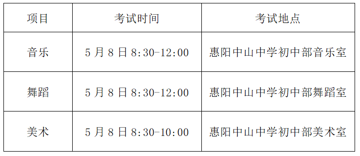 5月10日前,在惠州市惠阳区教育局政务信息公开目录(http://www.huiyang.gov.cn/hzhyjyj/gkmlpt/)公示考生的专业考试成绩。公示时间不少于5个自然日,公示期间如有异议可向在读学校反映,由在读学校向区教育局提出成绩复查申请。