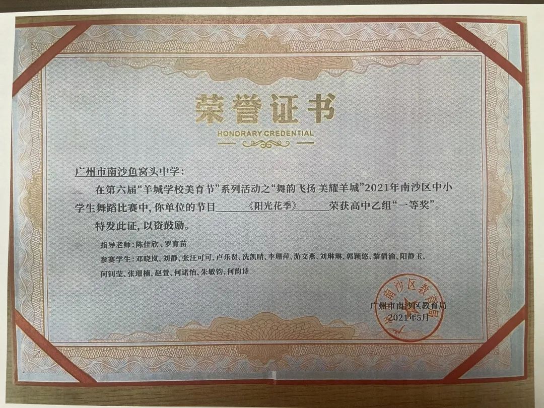 多年以来,我校在体育、艺术特色课程建设方面成果显著。高考本科上线率更达到了80%以上,并获得多项荣誉称号,两支教育团队先后评定为“广州市高水平教育团队”。