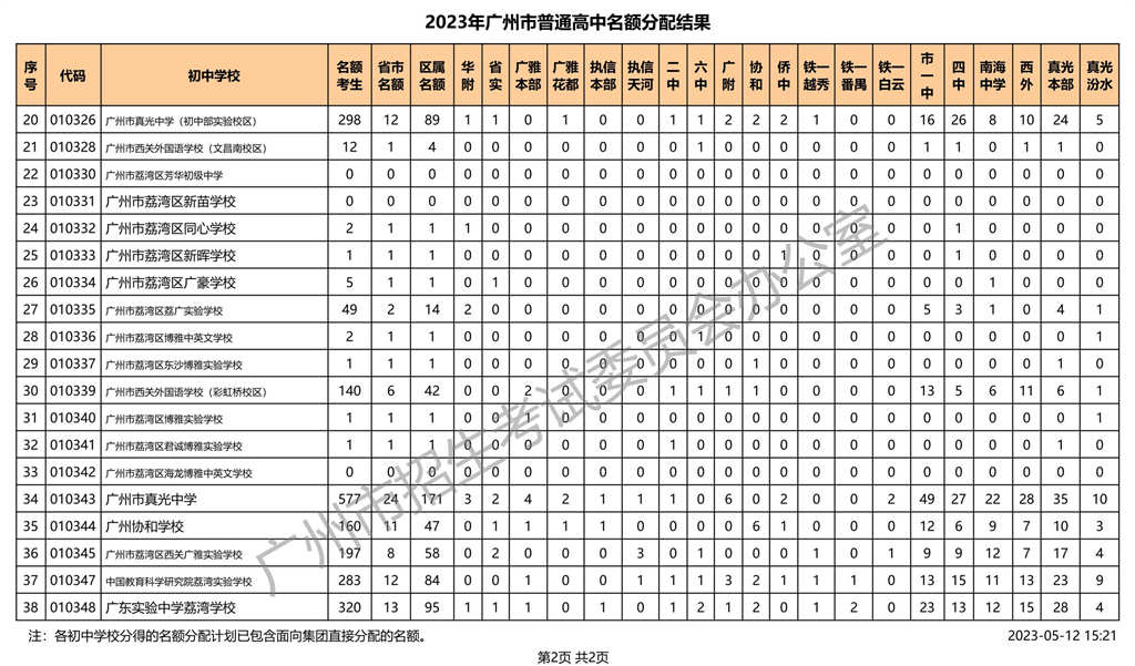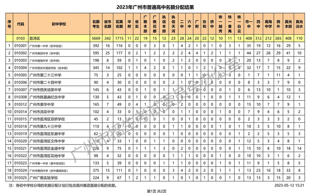 荔湾区|2023年广州市普通高中名额分配结果