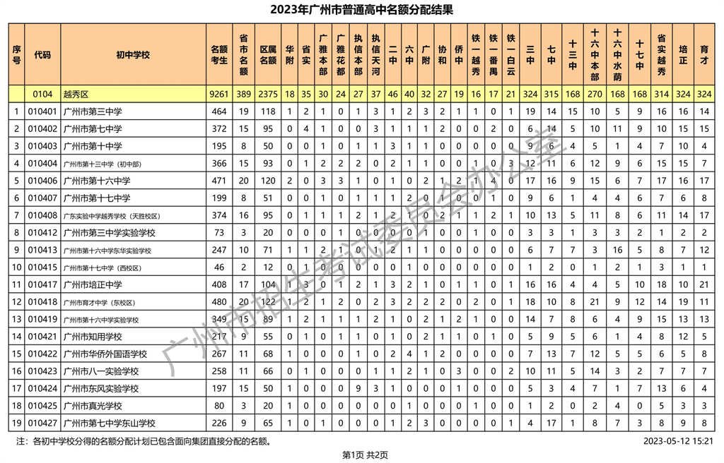 珠海市2023年中考高中录取最低控制分数线和投档分数线公布!