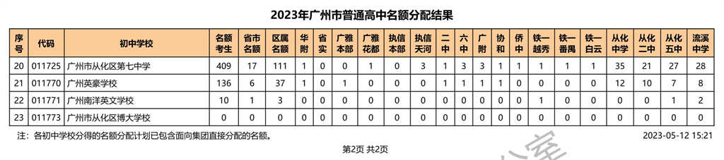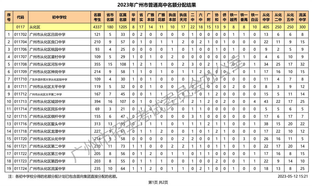 从化区|2023年广州市普通高中名额分配结果