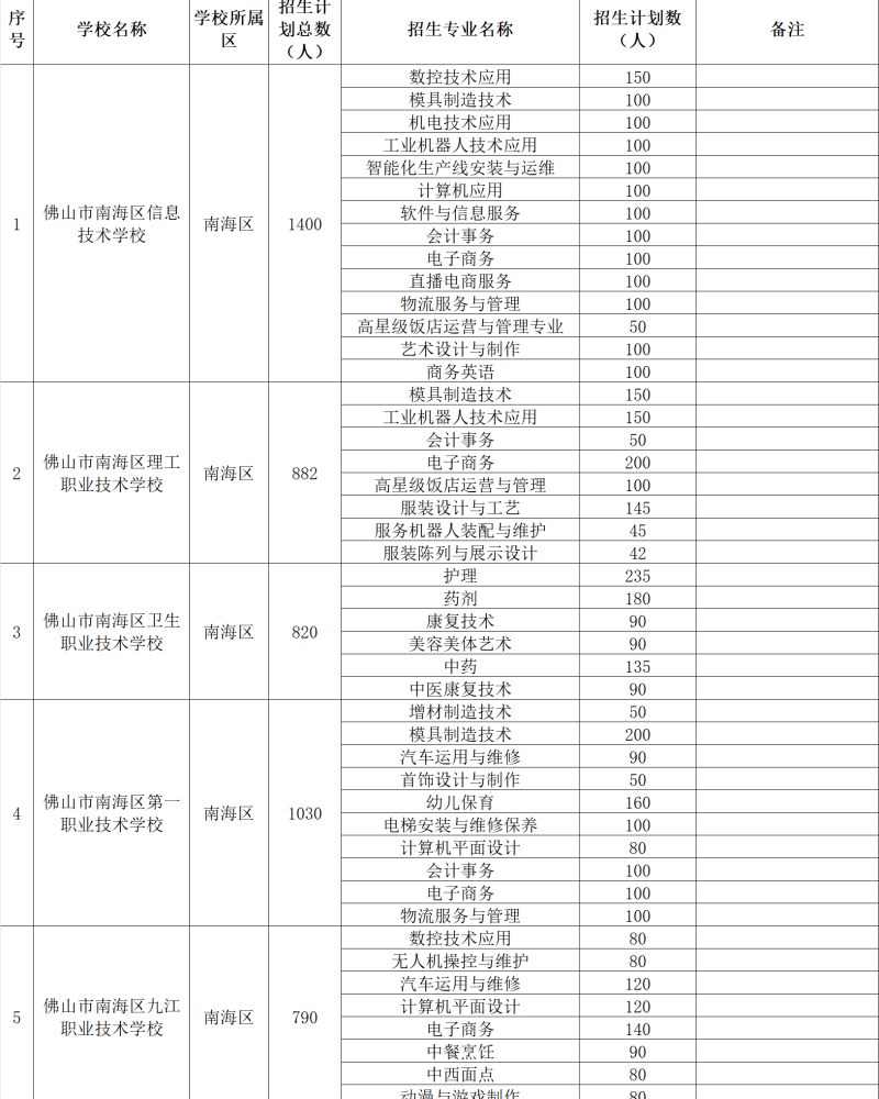 2023年南海区中等职业学校(不含技工院校)招生计划5322人,其中公办中职学校招生4922人,民办中职学校招生400人。