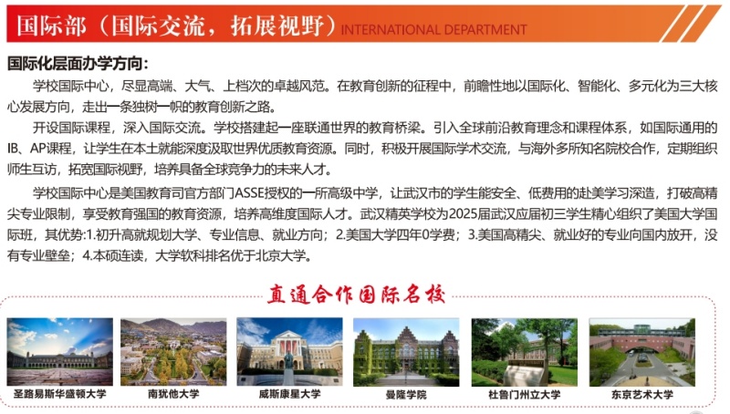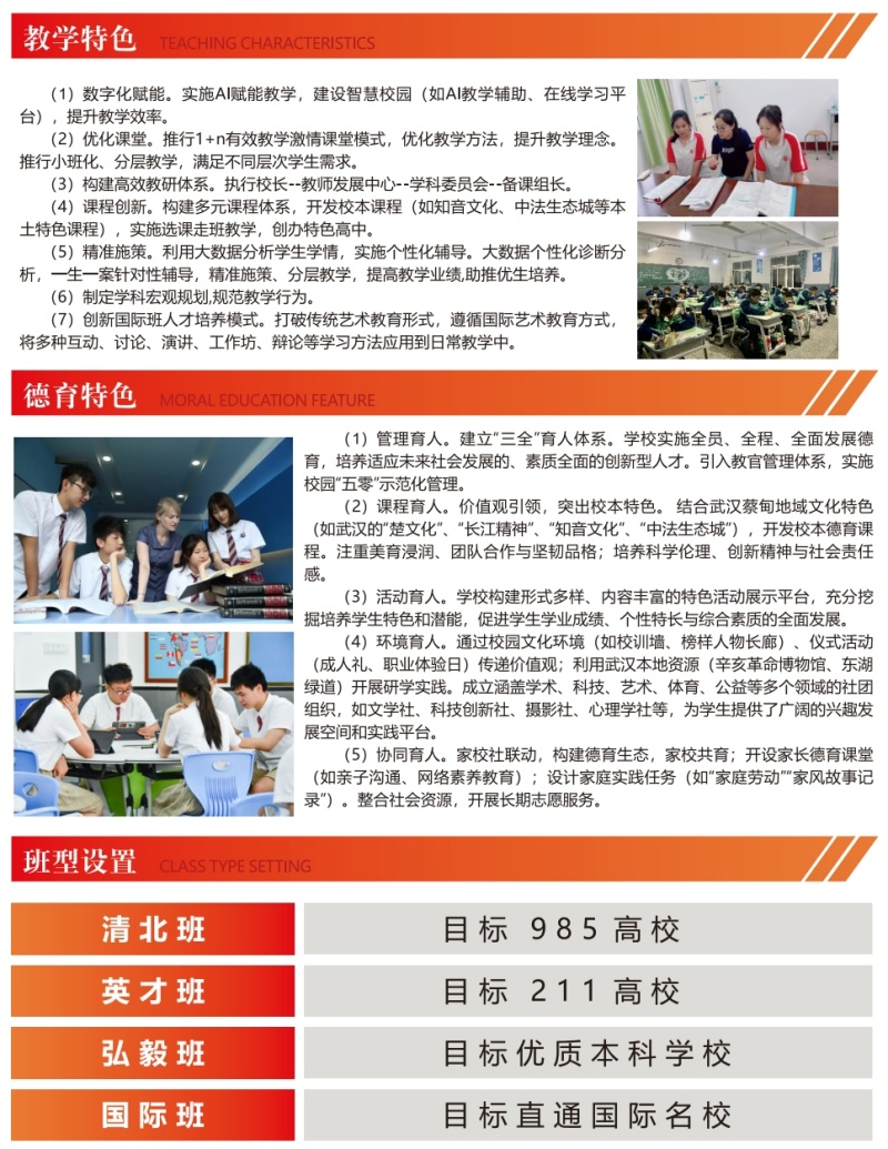 招生范围:面向武汉市应届中考毕业生,中考达到武汉市民办高中线的初中应届毕业生录取本校的均取得武汉市普高学籍。