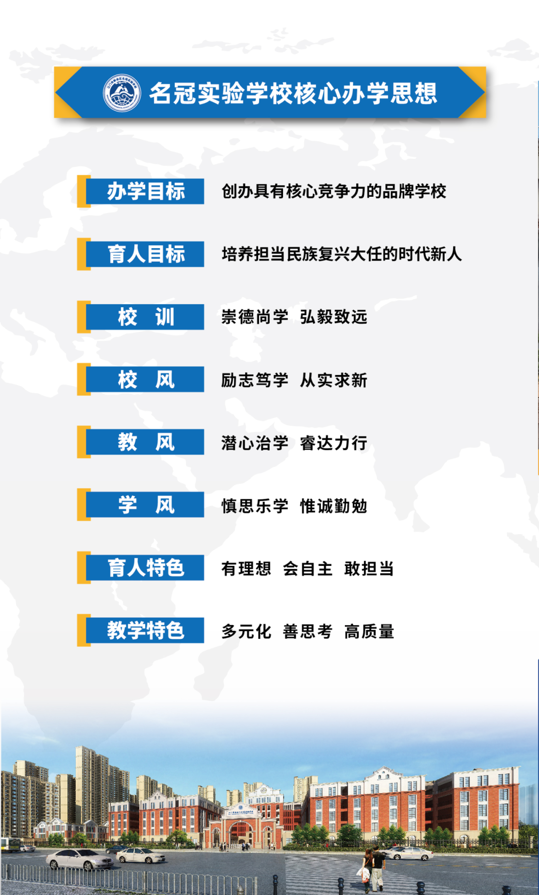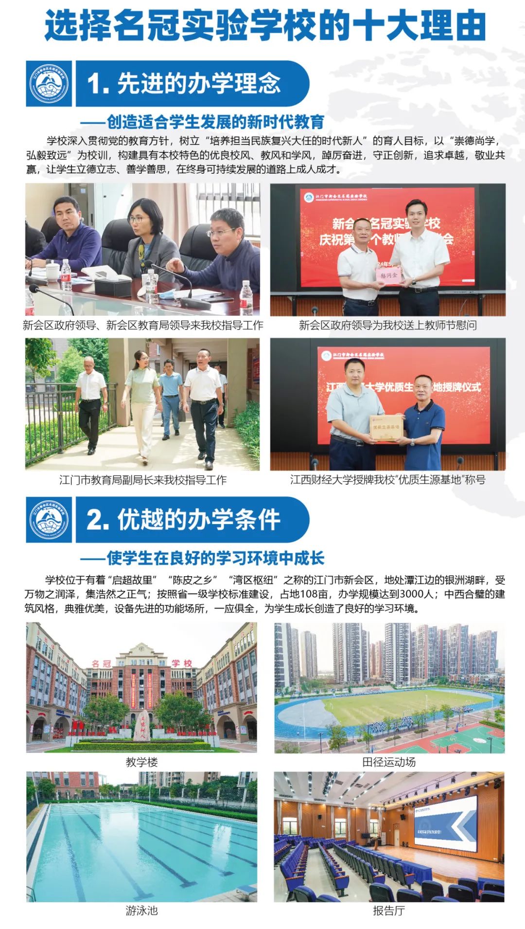 读名冠,上名校! 江门市新会区名冠实验学校 (原广外江门外校)秉持名冠创业精神 植入黄冈教育精髓,传承广外特色课程 致力于打造启超故里的高品质学校 为万千学子架起通往理想学府的桥梁