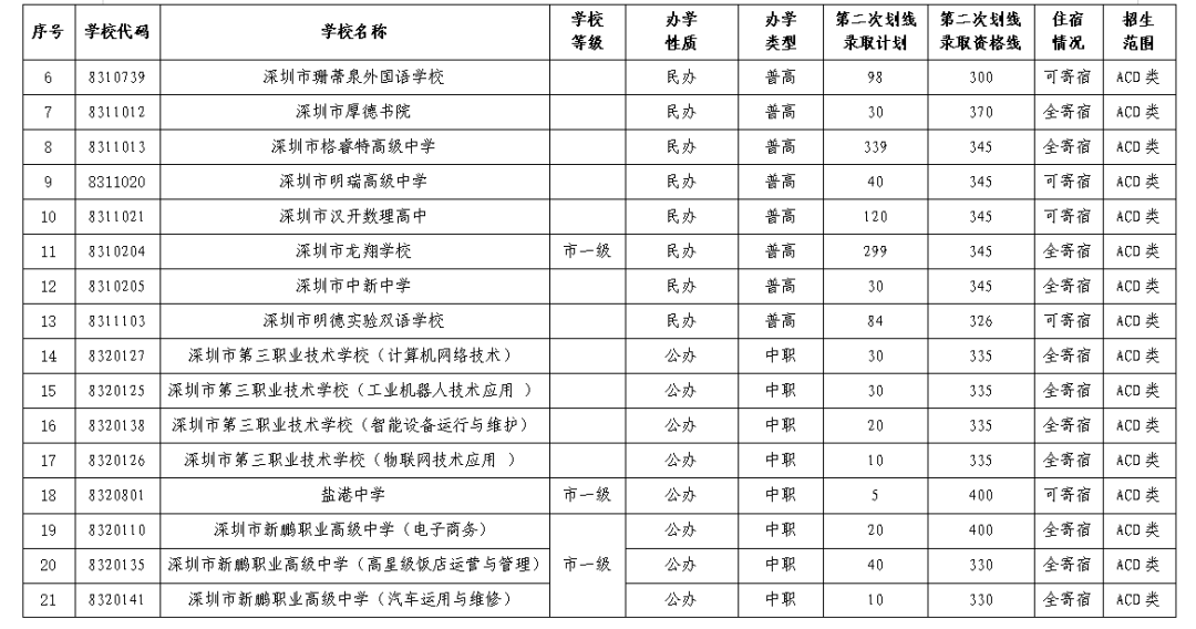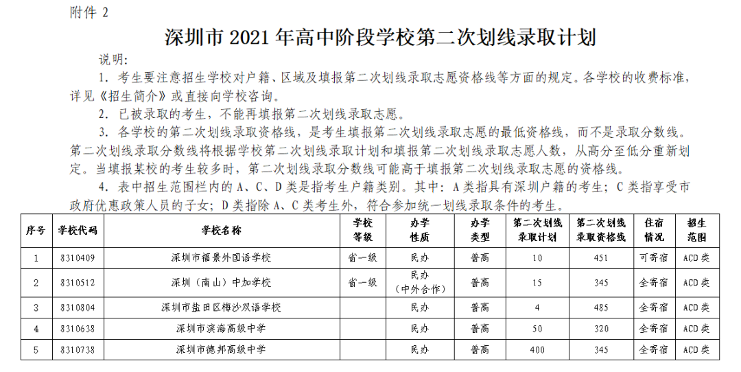 2.深圳市2021年高中阶段学校扩招及第二次划录取计划