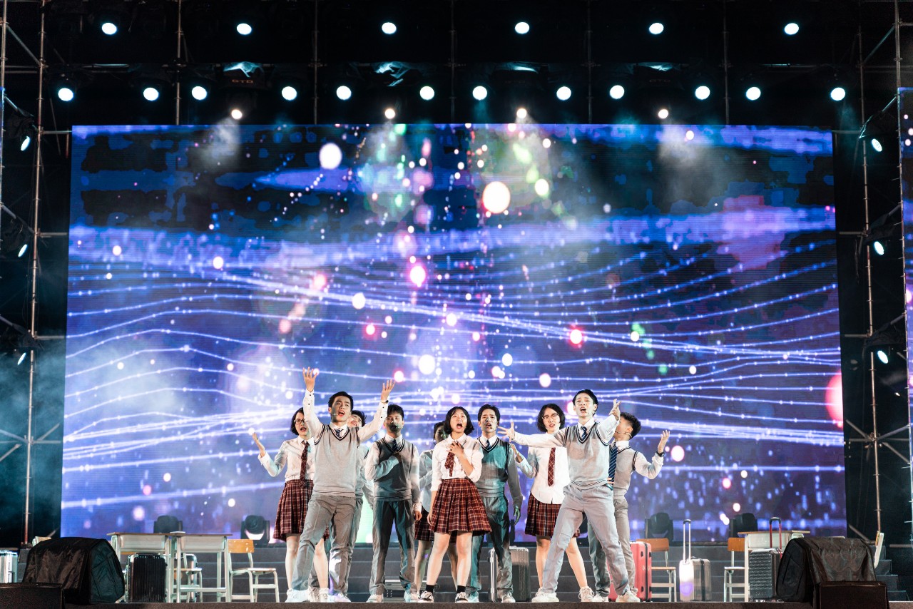 音乐测试在广州科学城中学艺术楼,学生从学校正门进入报到。