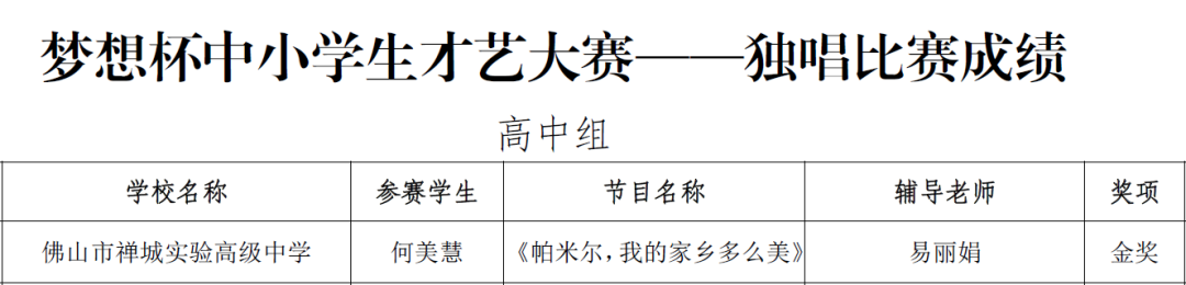 广佛肇音乐教师声乐大赛佛山市一等奖,禅城区第一名